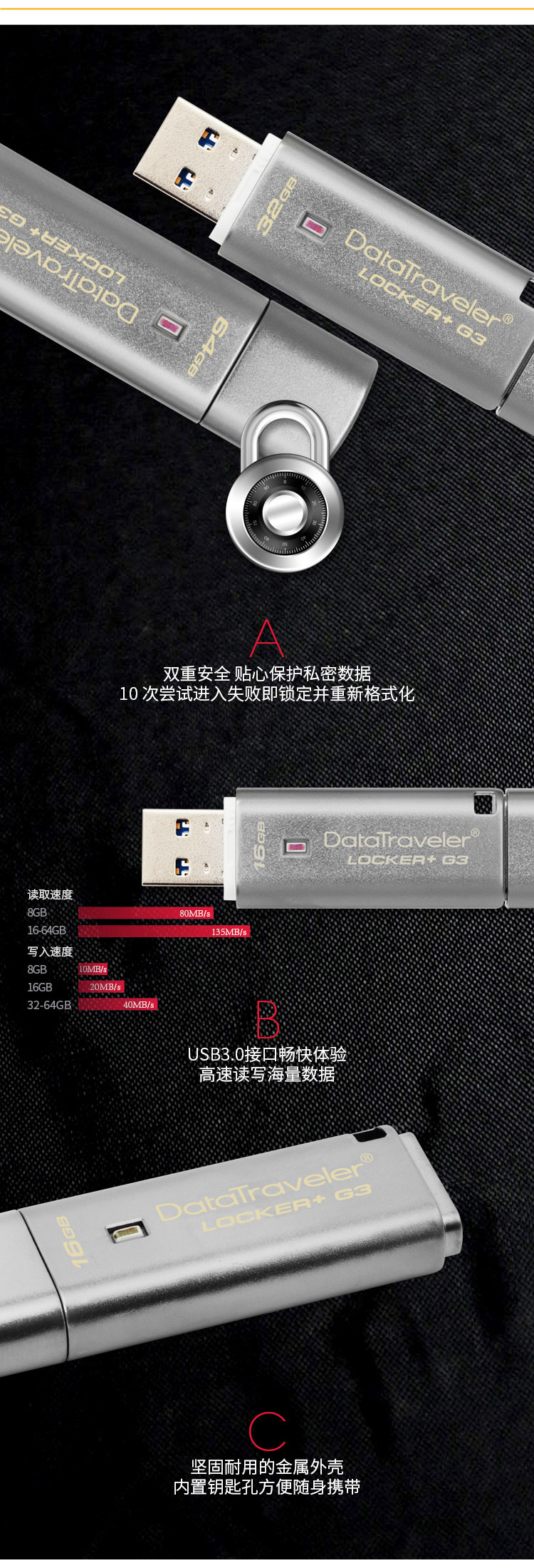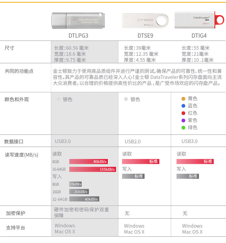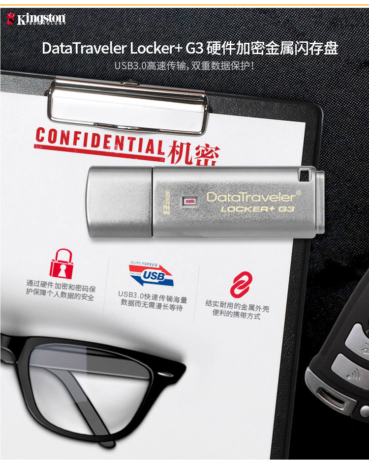 - 商品名称:金士顿(Kingston)8G USB3.0 U盘 DTLPG3 256位AES硬件金属加密