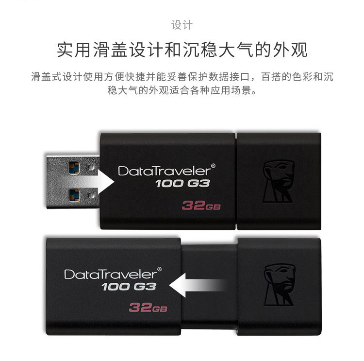 - 商品名称:金士顿(Kingston)32GB USB3.0 U盘 DT100G3 黑色 滑盖设计 时尚便利