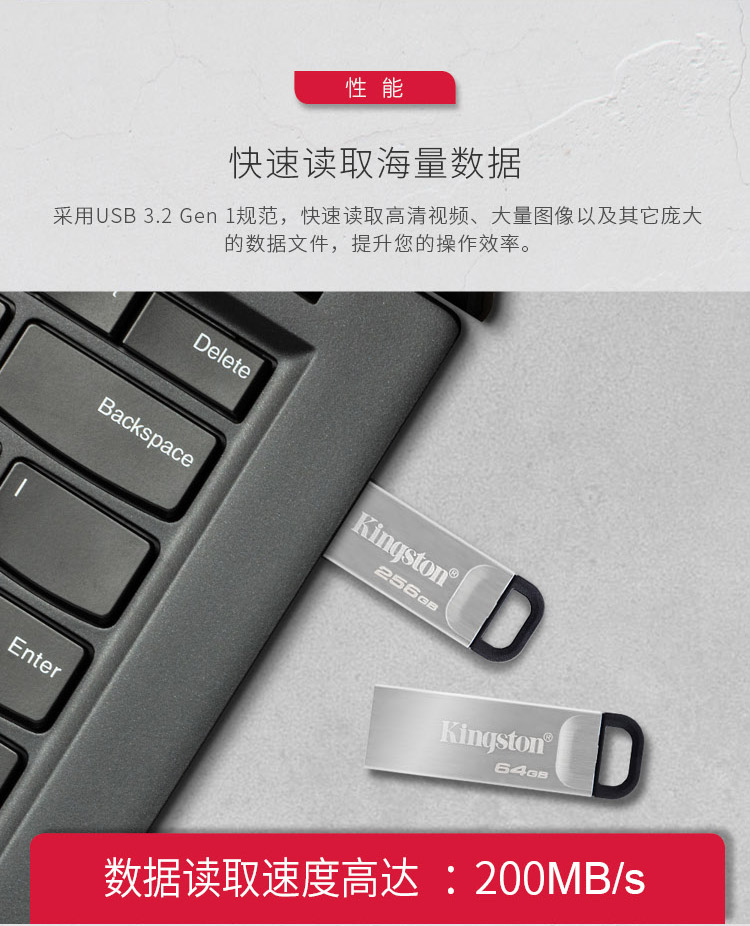 - 商品名称:金士顿(Kingston)64GB USB 3.2 Gen 1 U盘 DTKN金属外壳 读速200MB/s