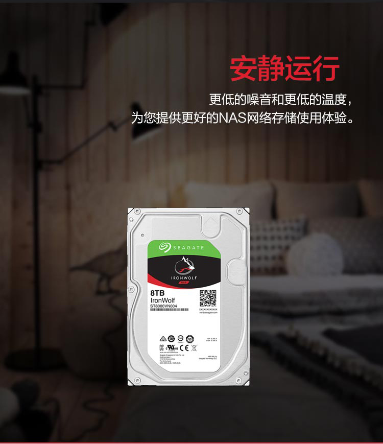 希捷(Seagate) NAS硬盘 8TB 256MB 7200转 PMR CMR垂直磁记录 网络存储 SATA 希捷酷狼IronWolf ST8000VN004