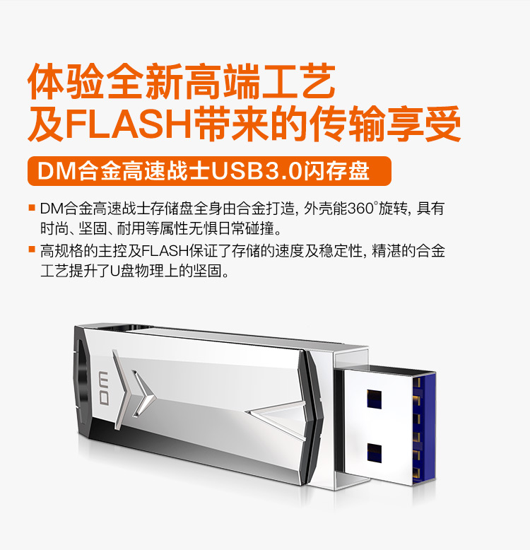 商品名称:大迈(DM)128GB USB3.0 U盘 战士PD096系列 可旋转电脑u盘车载高速优盘