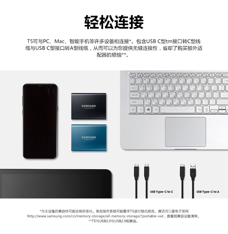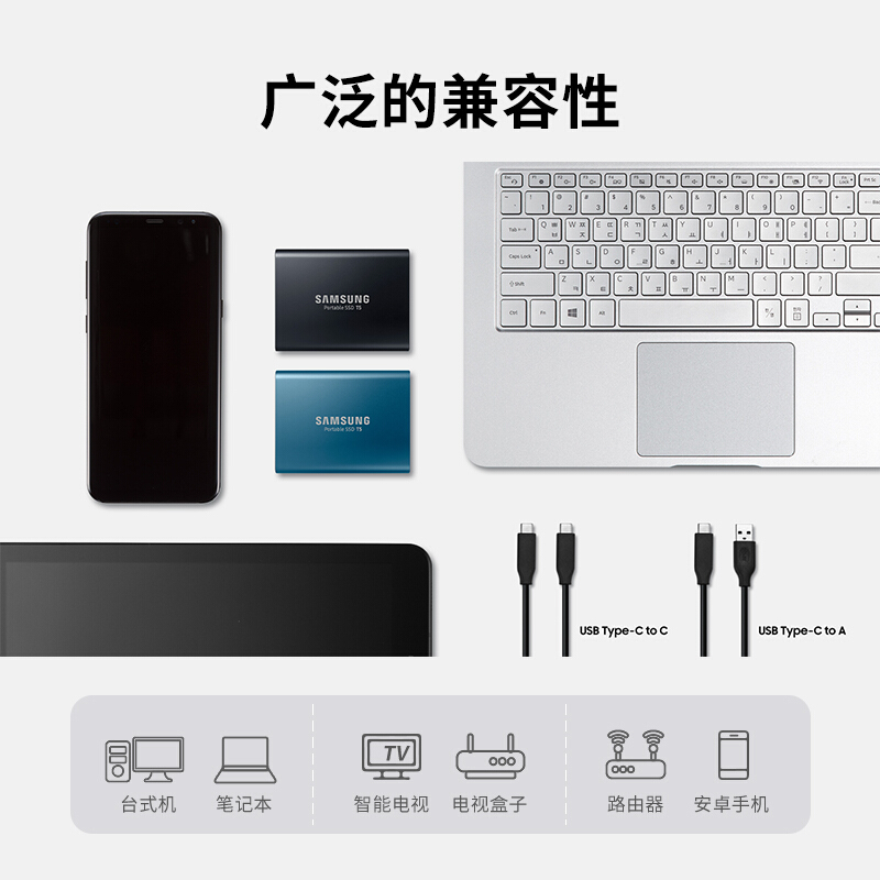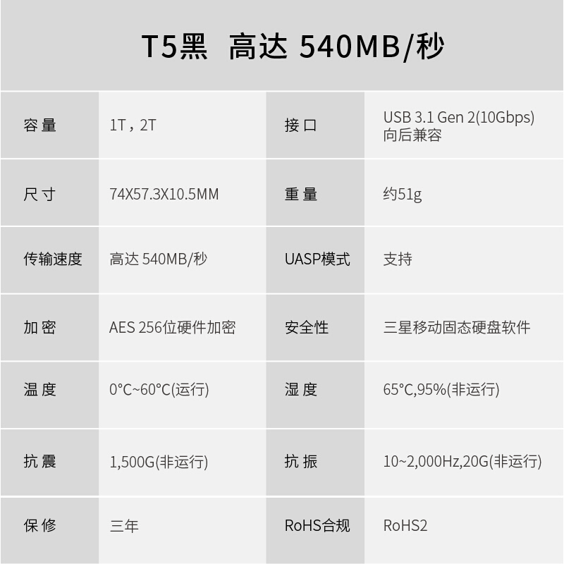 商品名称:三星(SAMSUNG) 1TB Type-c USB3.1 移动硬盘 固态(PSSD)T5 玄英黑 最大传输速度540MB/s 安全便携