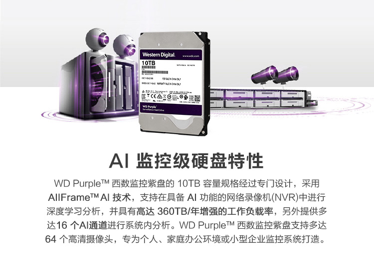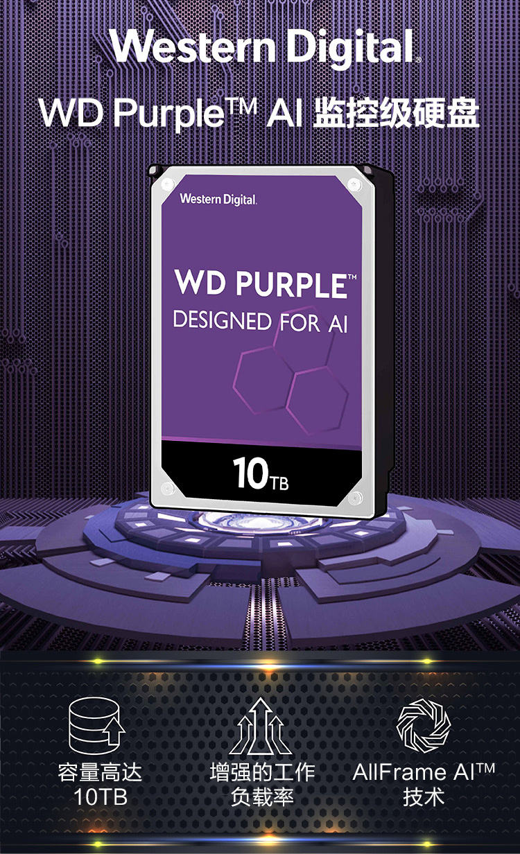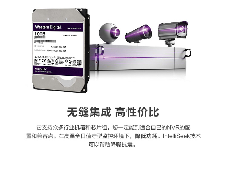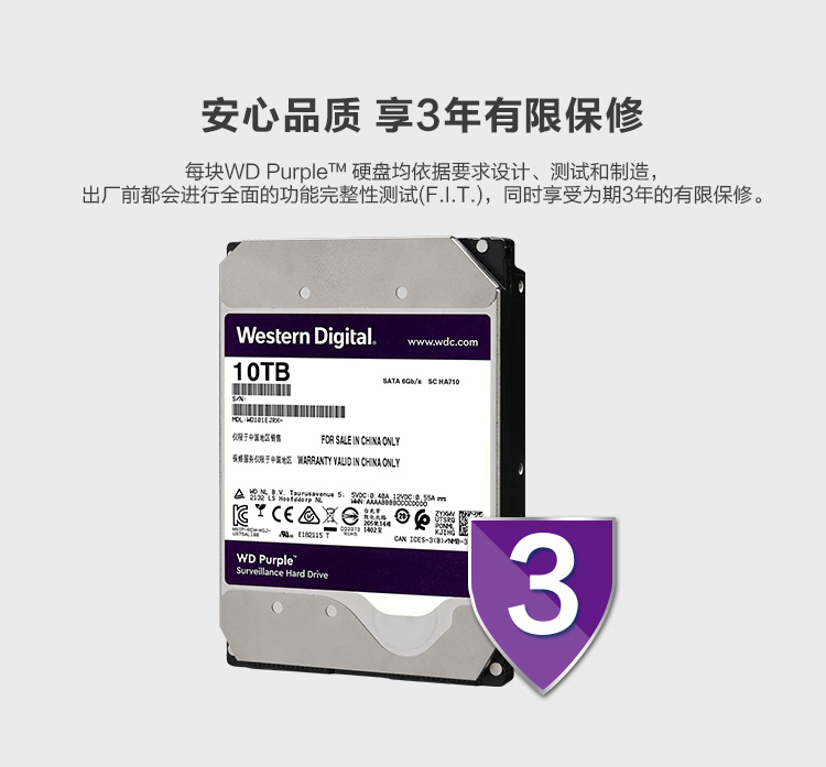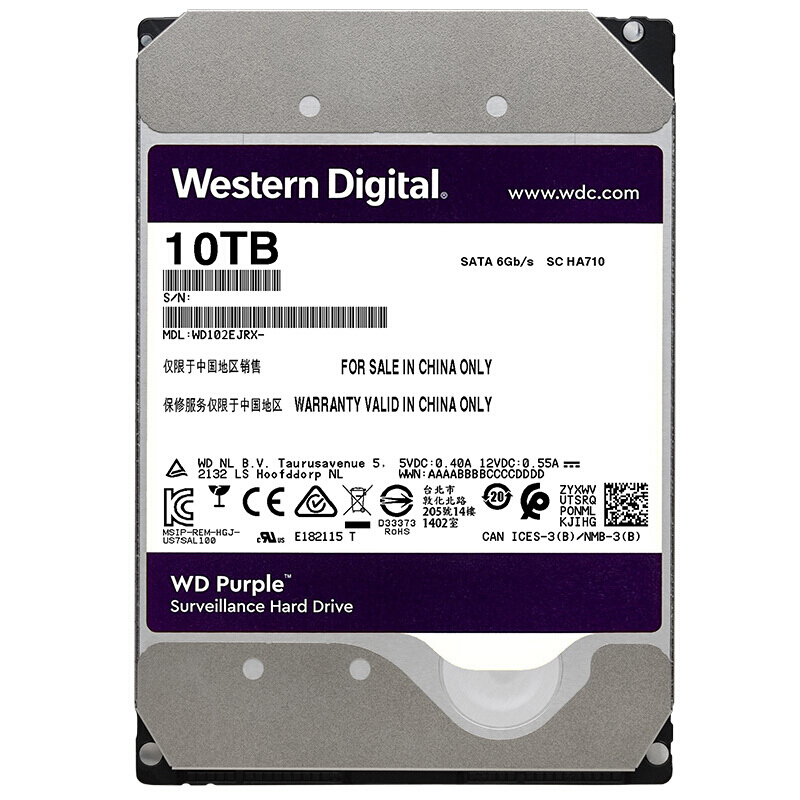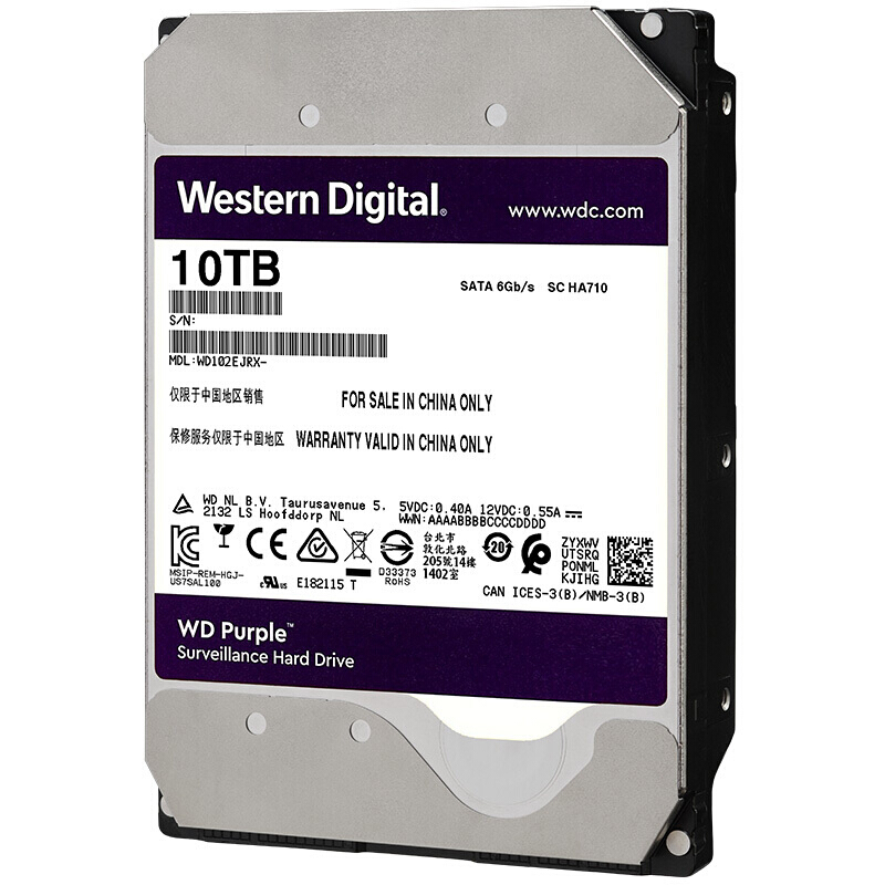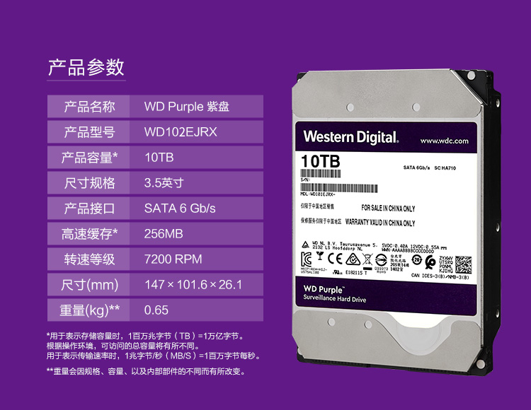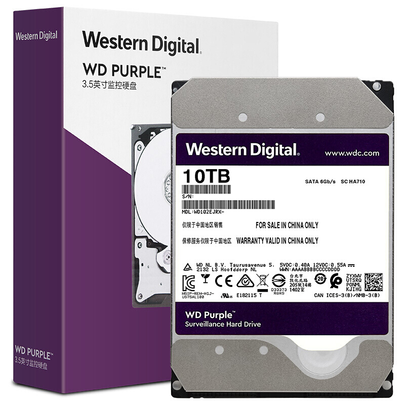 - 商品名称:西部数据(Western Digital)紫盘 10TB SATA6Gb/s 256M 监控硬盘(WD102EJRX)