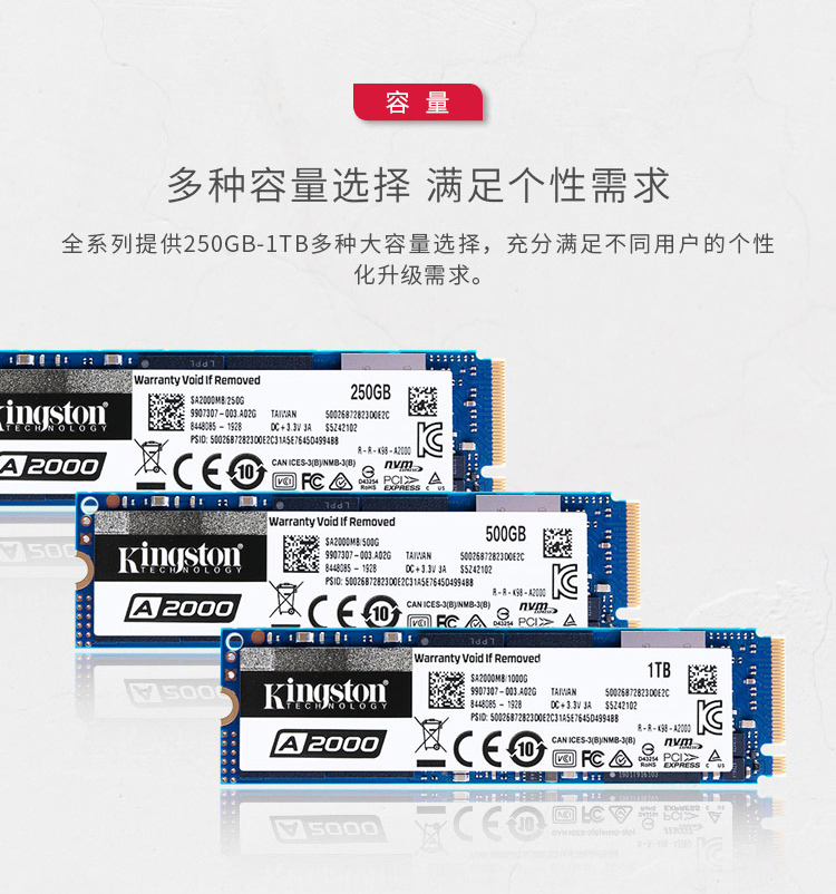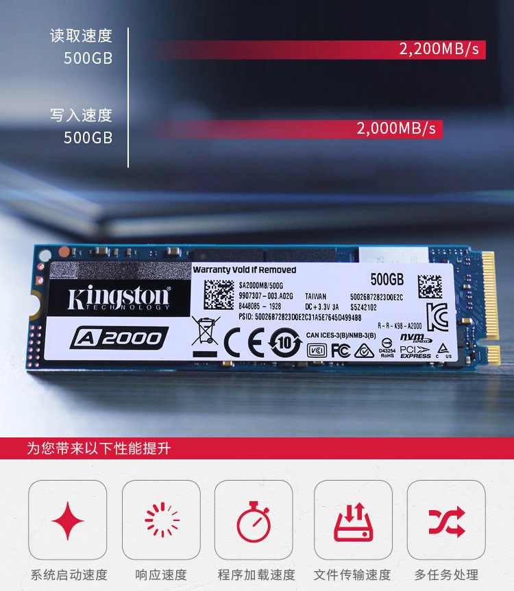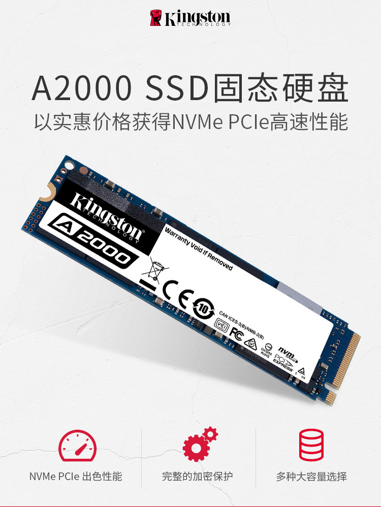 - 商品名称:金士顿(Kingston) 500GB SSD固态硬盘 M.2接口(NVMe协议) A2000系列