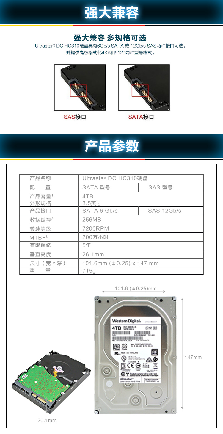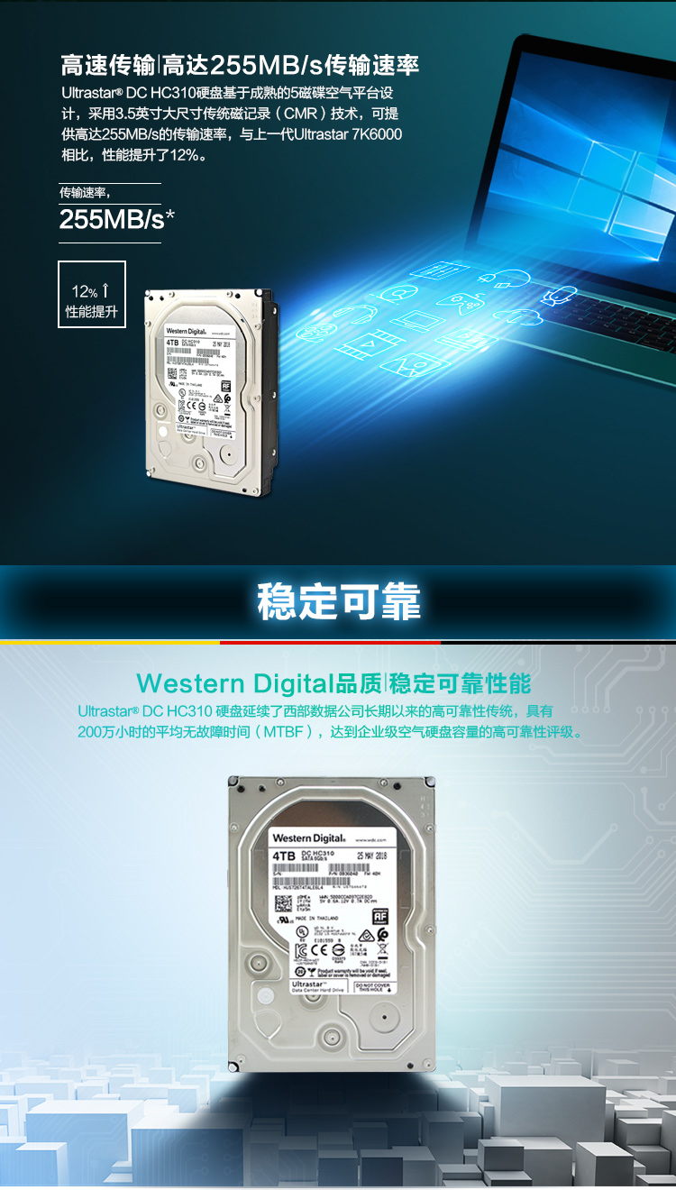 - 商品名称:西部数据(Western Digital) 机械硬盘 4TB SATA6Gb/s 7200转256M 企业级空气硬盘(HUS726T4TALE6L4)