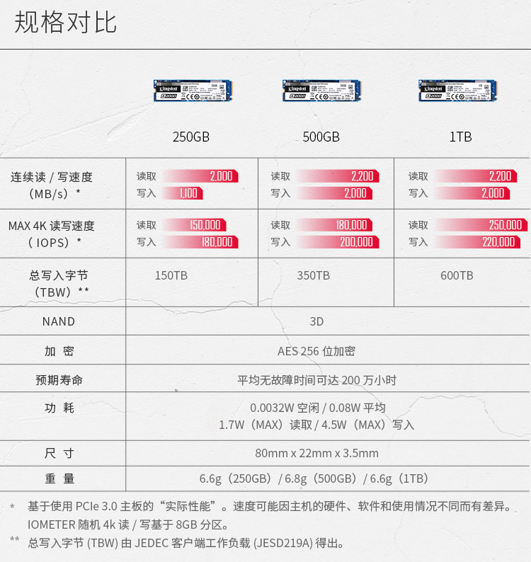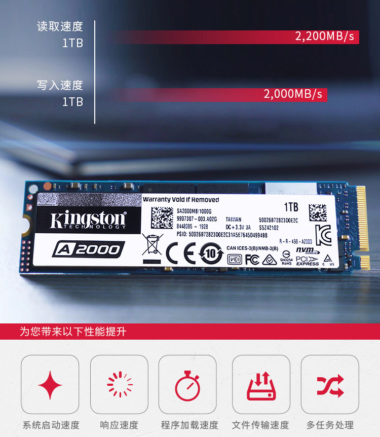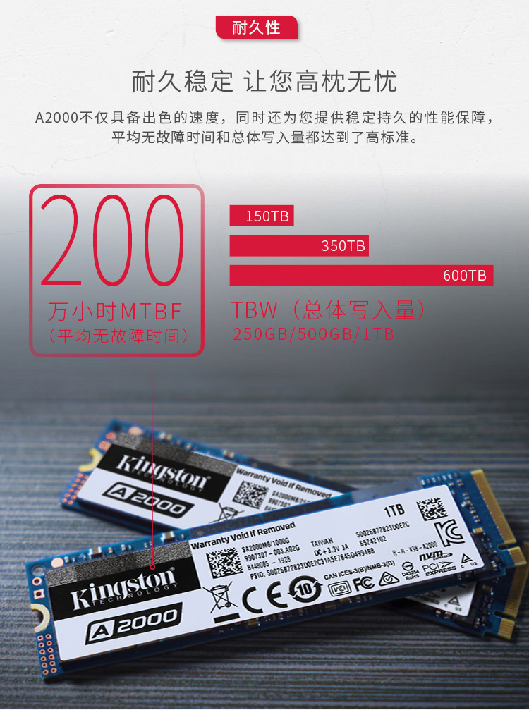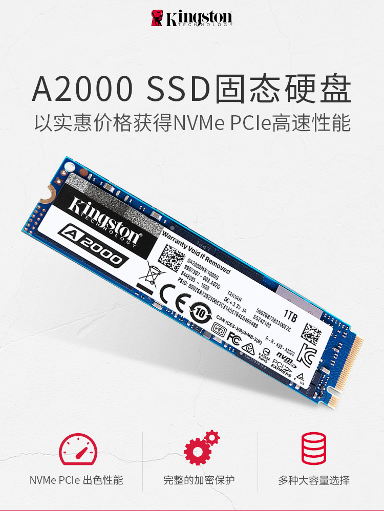 - 商品名称:金士顿(Kingston) 1TB SSD固态硬盘 M.2接口(NVMe协议) A2000系列