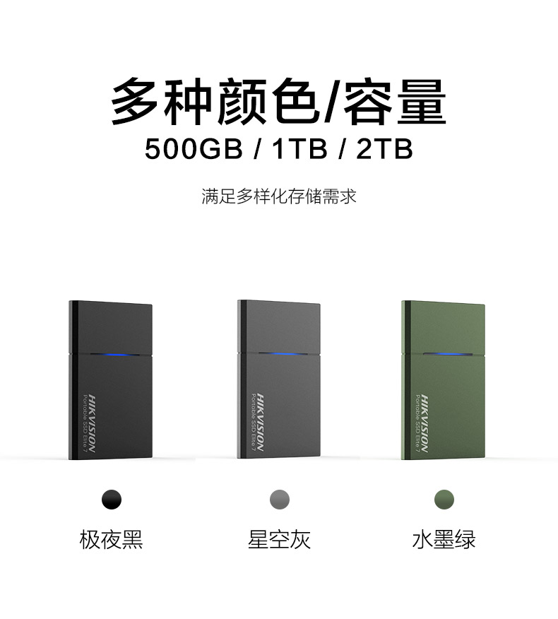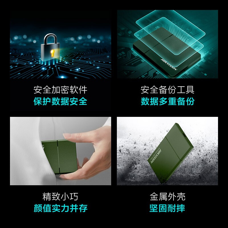 - 商品名称:海康威视(HIKVISION)500GB Type-c USB3.2移动硬盘 固态(PSSD)传输速度高达1060MB/s E7水墨绿5年质保