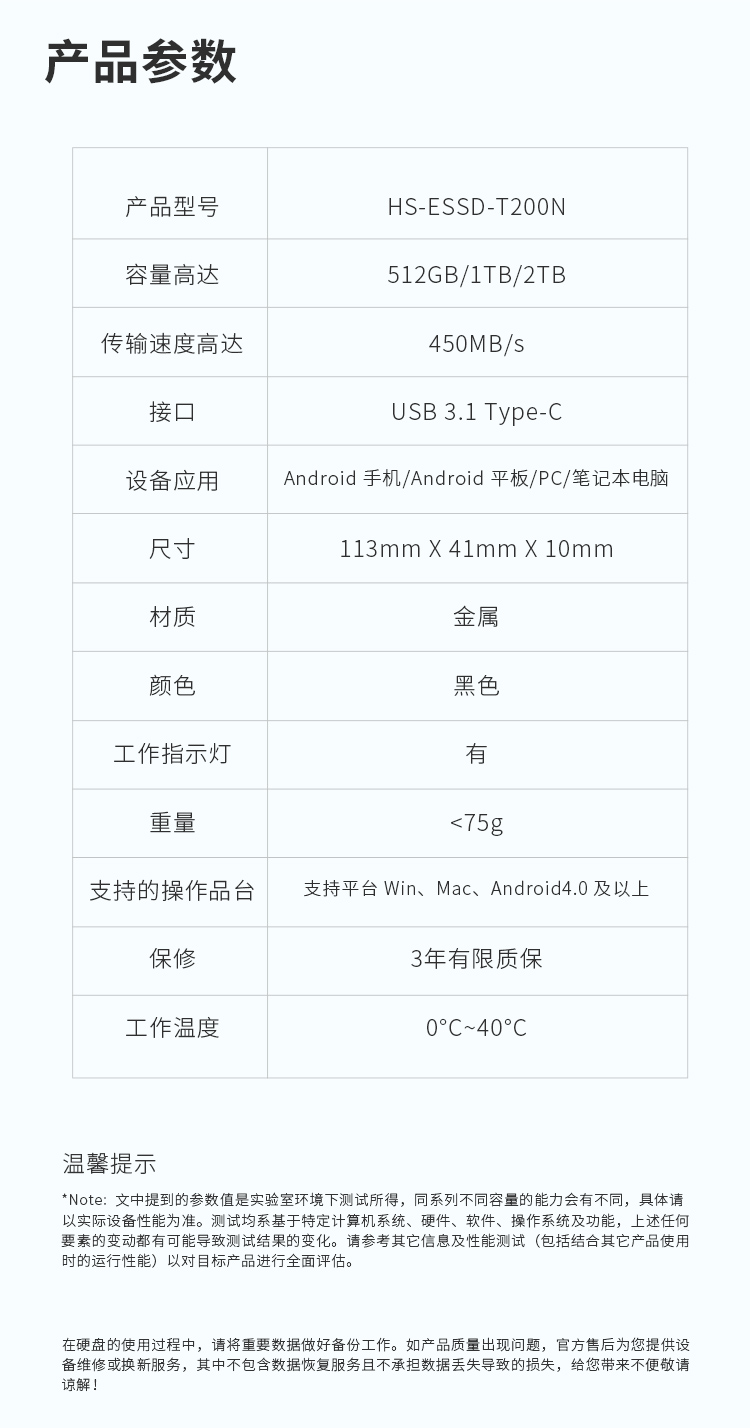 - 商品名称:海康威视(HIKVISION)512GB Type-c USB3.1移动硬盘 固态(PSSD)金属质感 商务便携 3年质保 只换不修