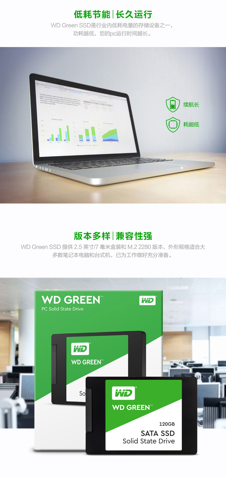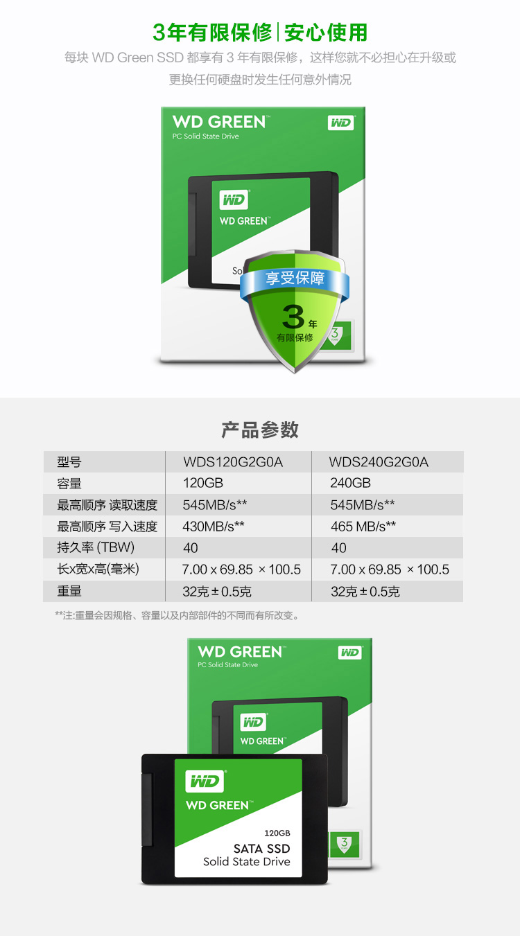 - 商品名称:西部数据(WD)120GB SSD固态硬盘 SATA3.0接口 Green系列-SSD日常家用普及版|三年质保
