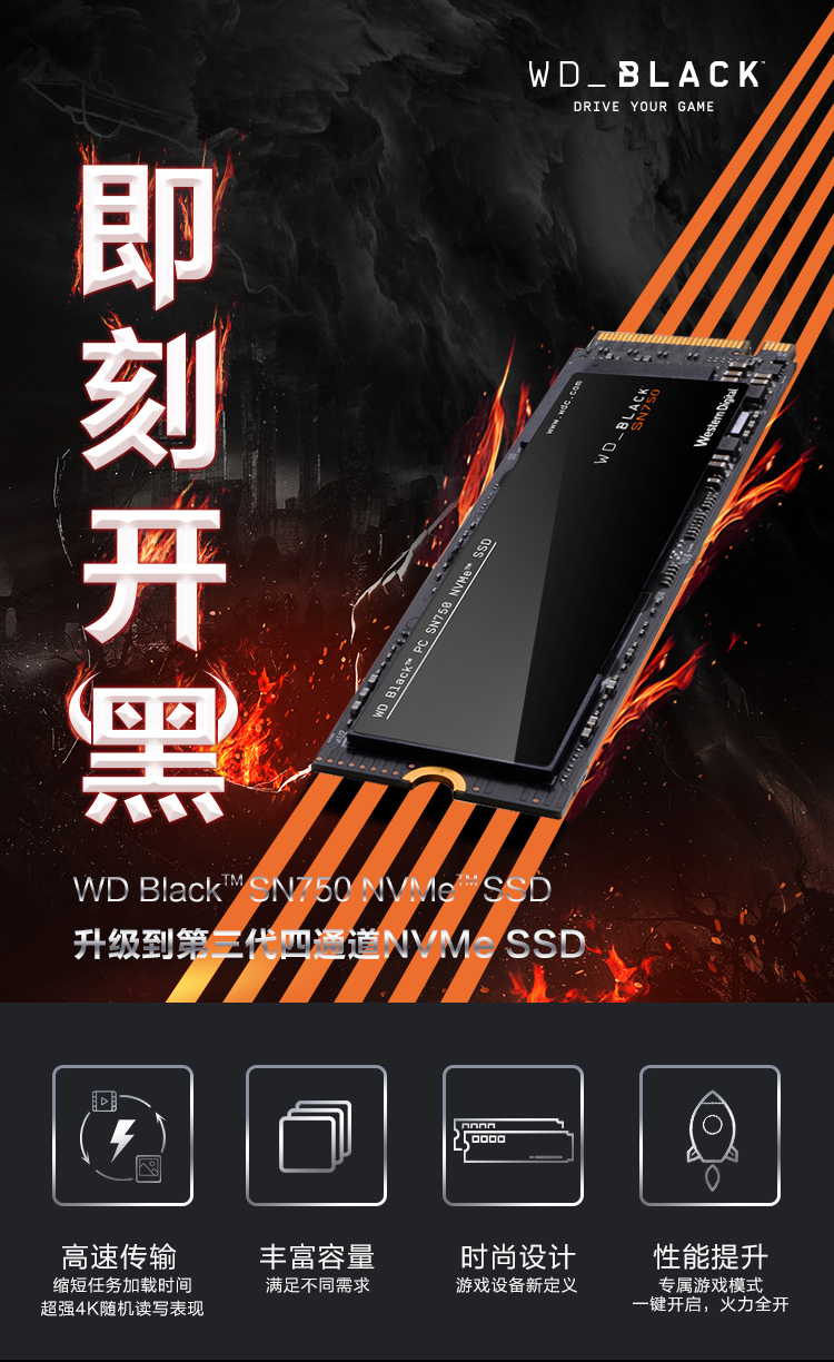 - 商品名称:西部数据(Western Digital)250GB SSD固态硬盘 M.2接口(NVMe协议)WD_BLACK SN750游戏高性能版五年质保