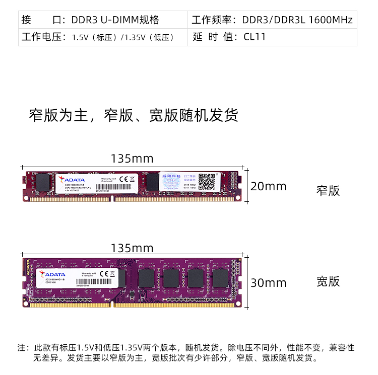 - 商品名称:威刚(ADATA)DDR3 1600 8GB 台式机内存条 万紫千红