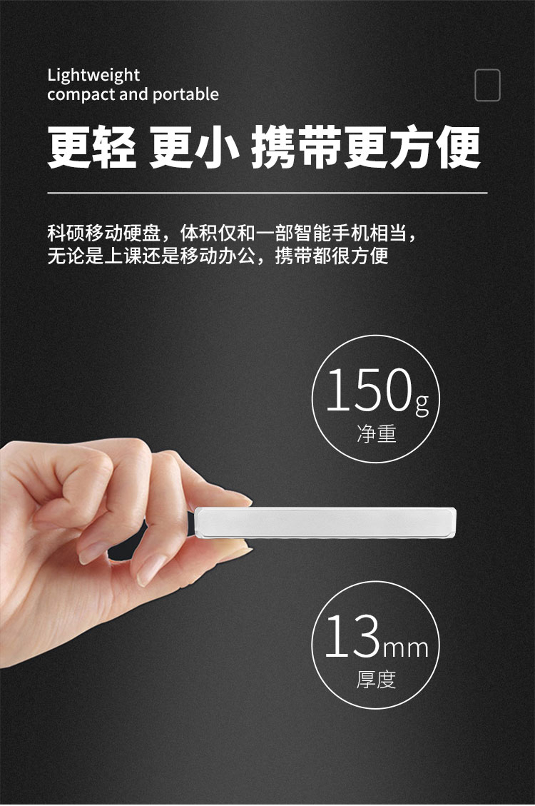 科硕 KESU 移动硬盘加密1TB USB3.0 K205 2.5英寸魅力黑外接存储文件照片备份