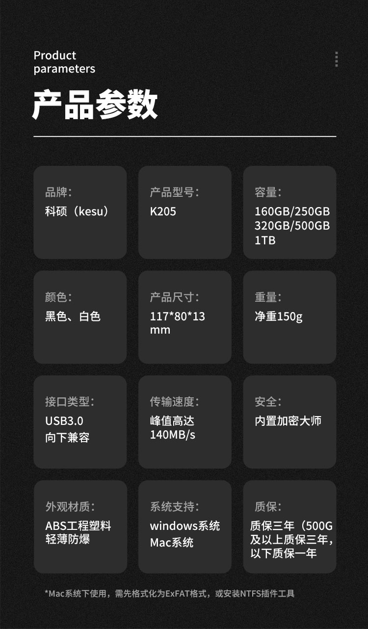 商品名称:科硕 KESU 移动硬盘加密1TB USB3.0 K205 2.5英寸魅力黑外接存储文件照片备份