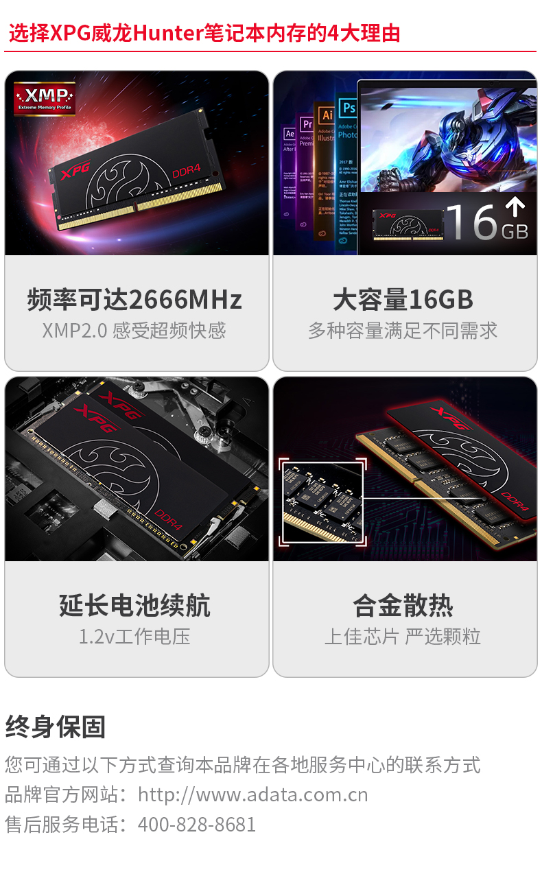 - 商品名称:威刚(ADATA)DDR4 2666 8GB 笔记本内存 XPG 威龙 Hunter