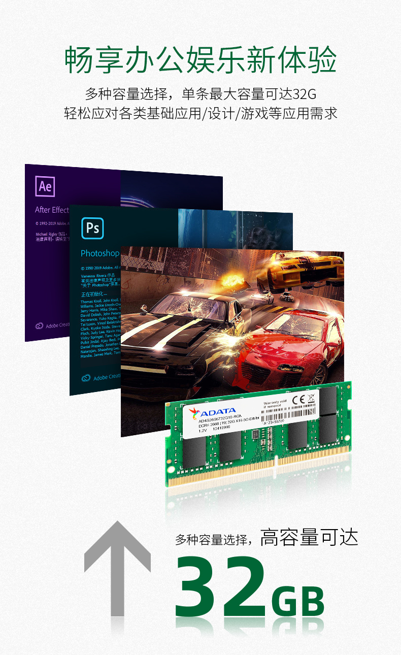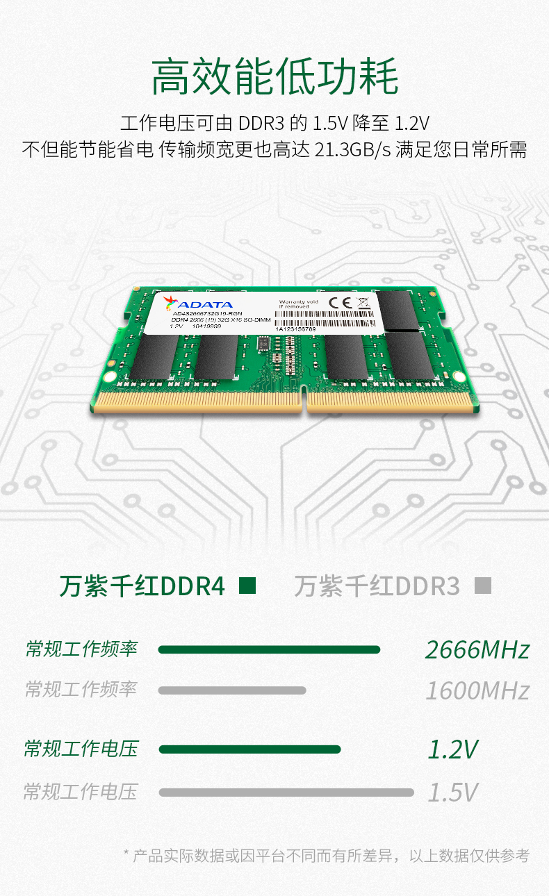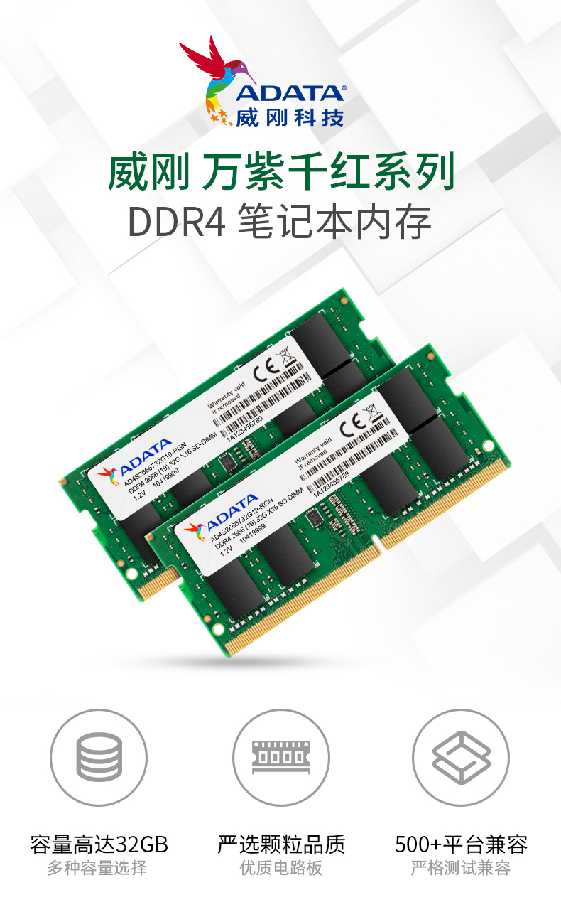 - 商品名称:威刚(ADATA)DDR4 2666 32GB 笔记本内存条 万紫千红