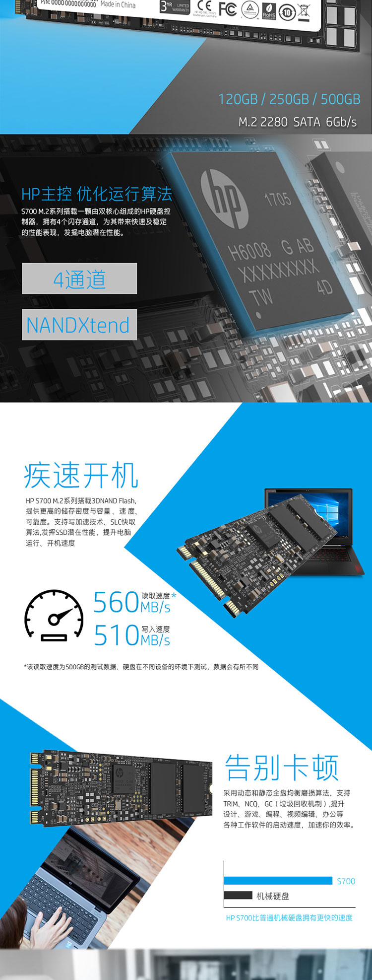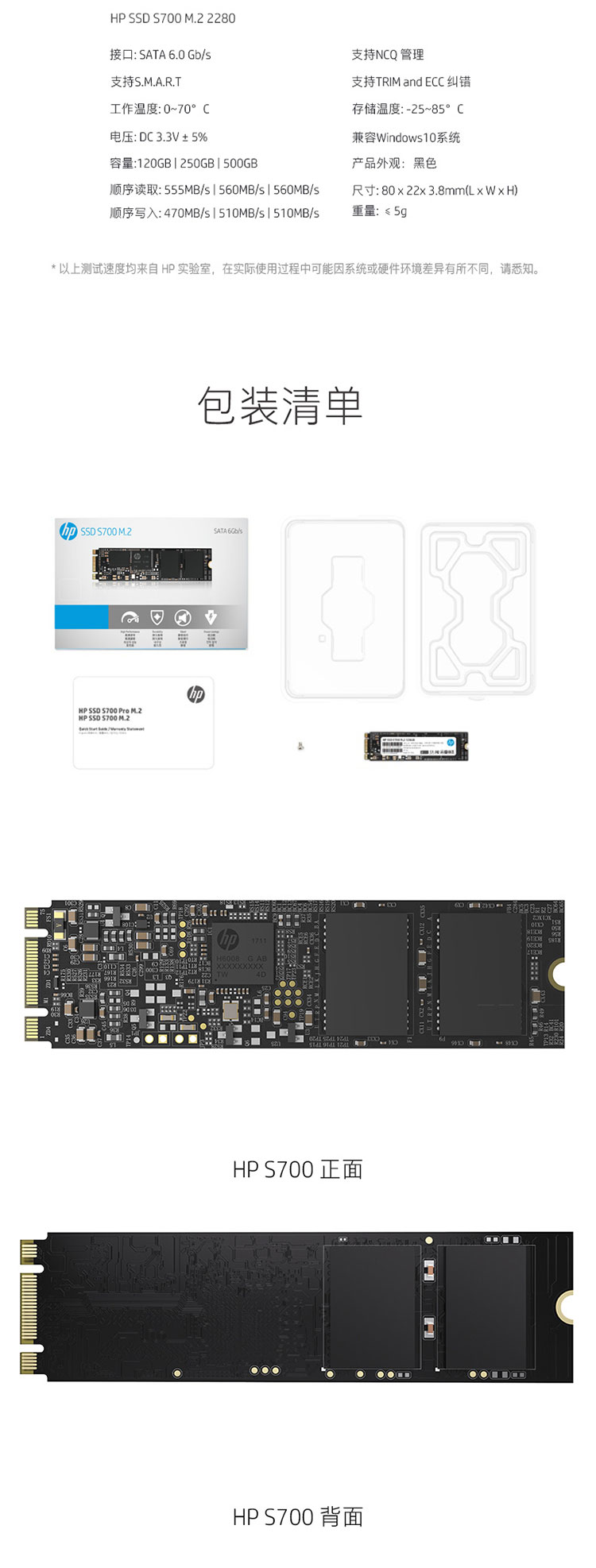 - 商品名称:惠普(HP) 120G SSD固态硬盘 M.2接口(SATA总线) S700系列