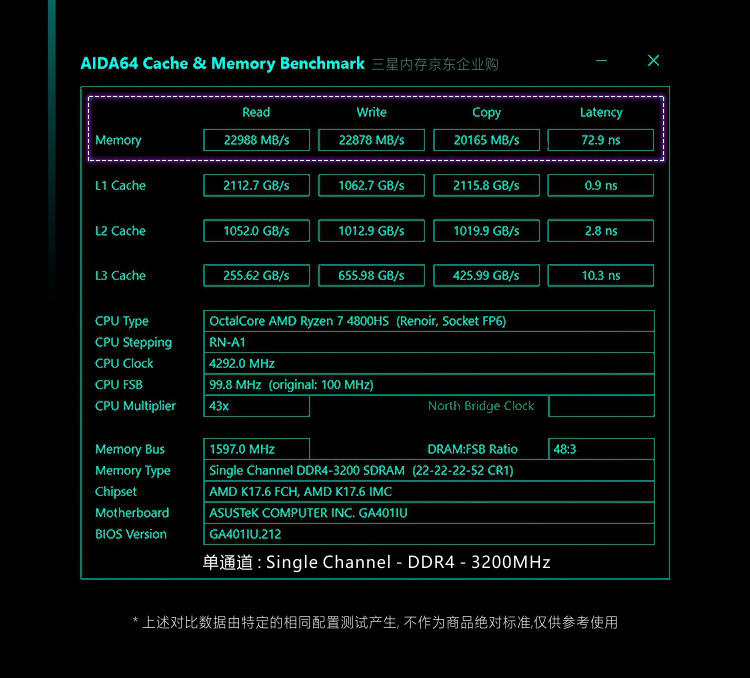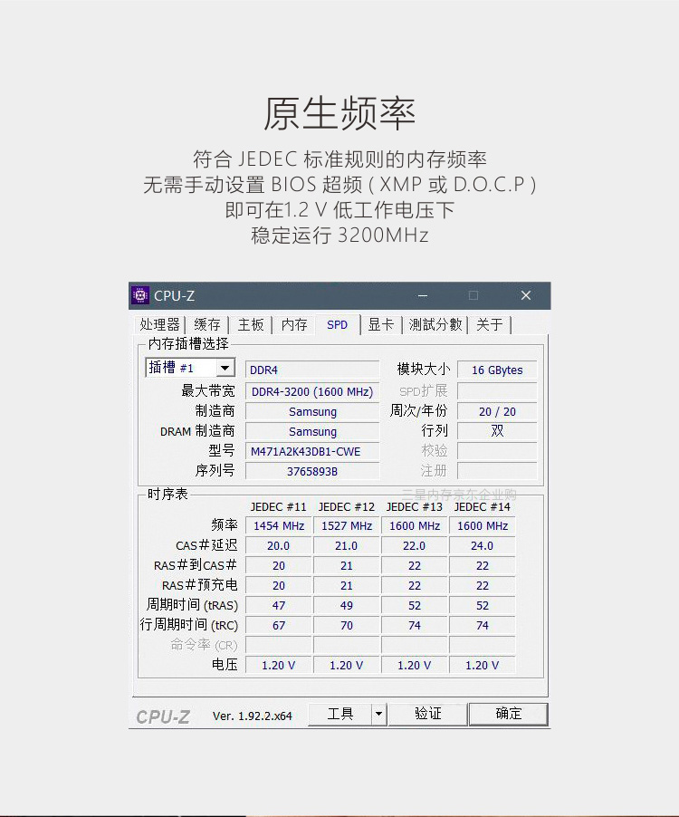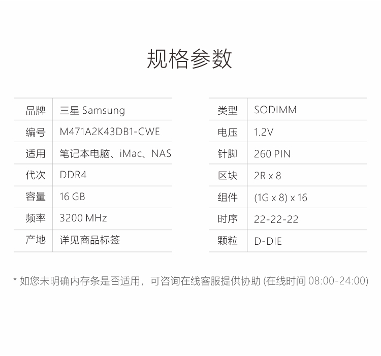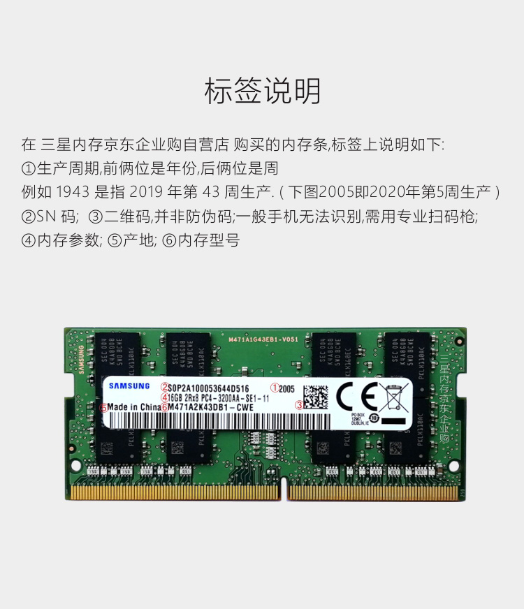 - 商品名称:三星 SAMSUNG 笔记本内存 16G DDR4 3200频率 内存条