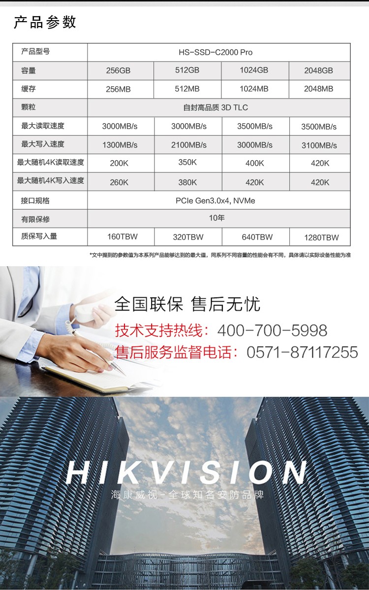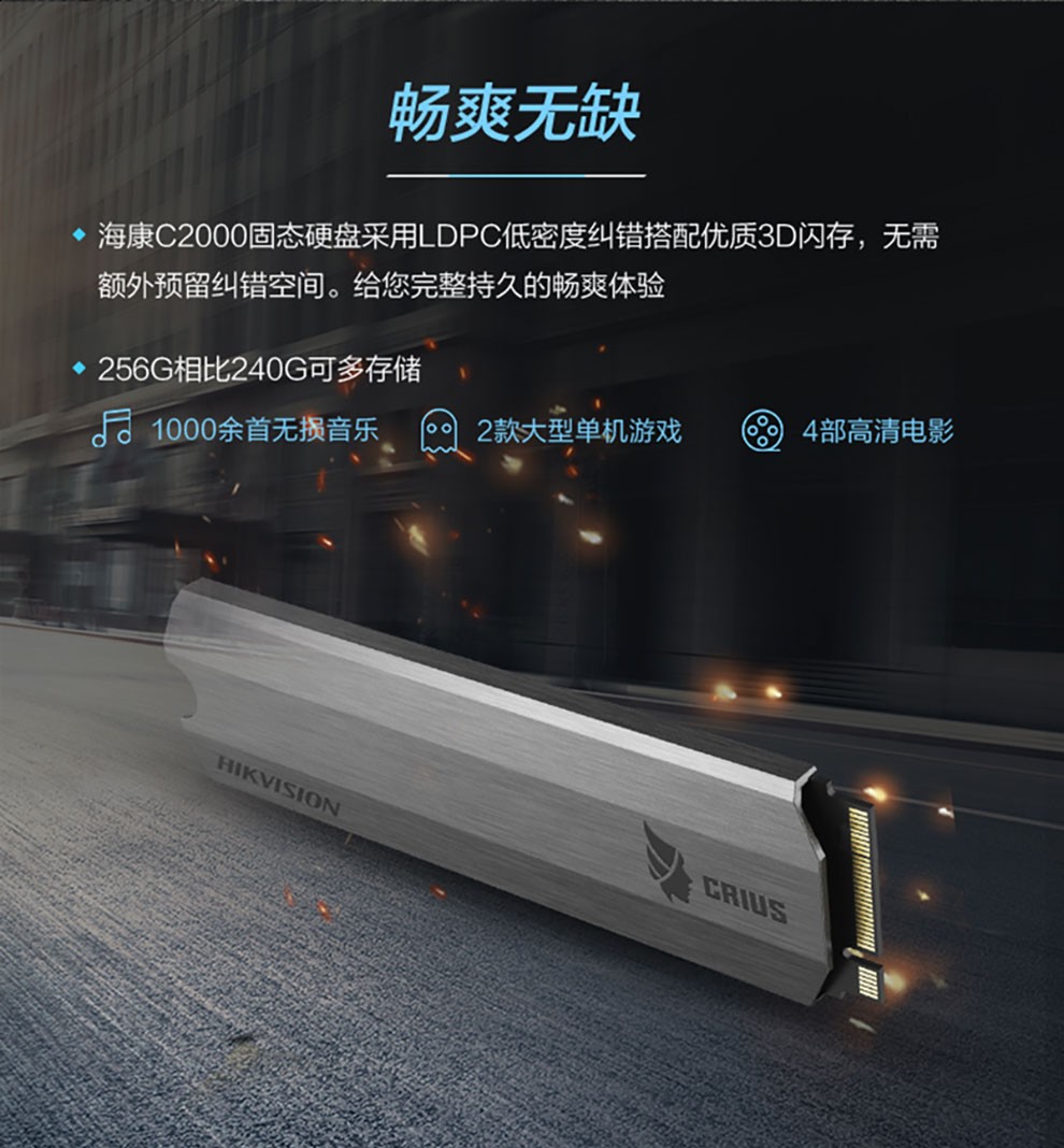 - 商品名称:海康威视 SSD固态硬盘C2000 PRO/E2000L M.2接口(NVMe协议) 笔记本台式机 C2000 PRO 256G