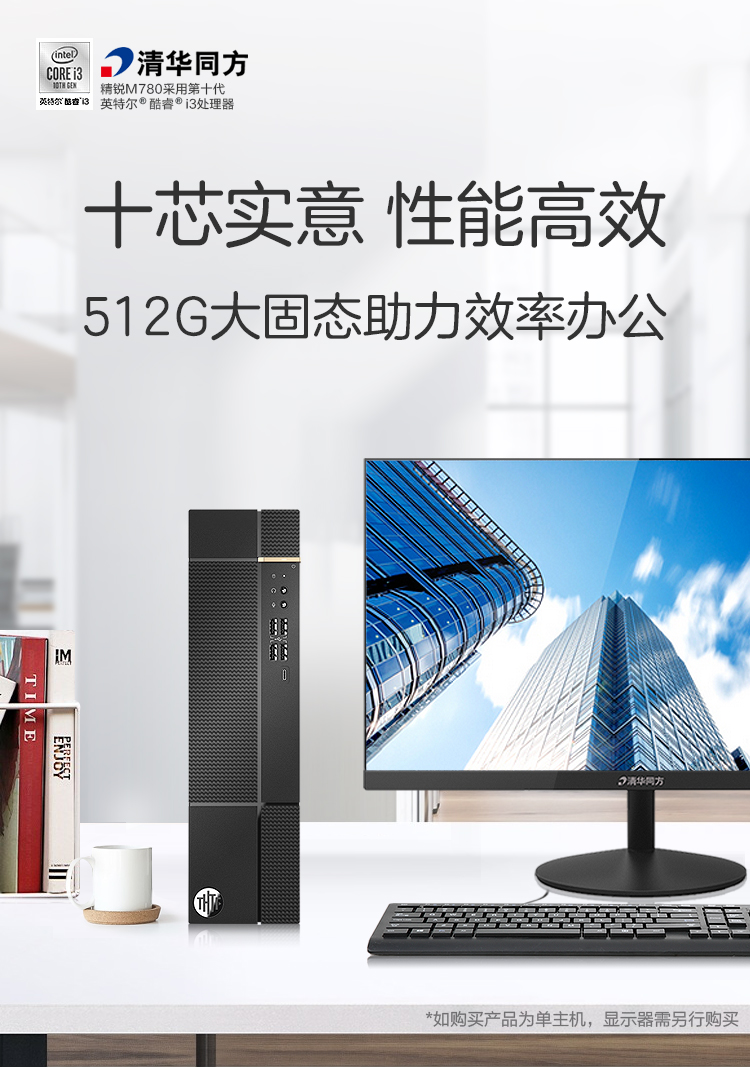 商品名称:清华同方(THTF)精锐M780商用办公电脑整机(I3-10100 8G 512GSSD 内置WiFi )21.5套机