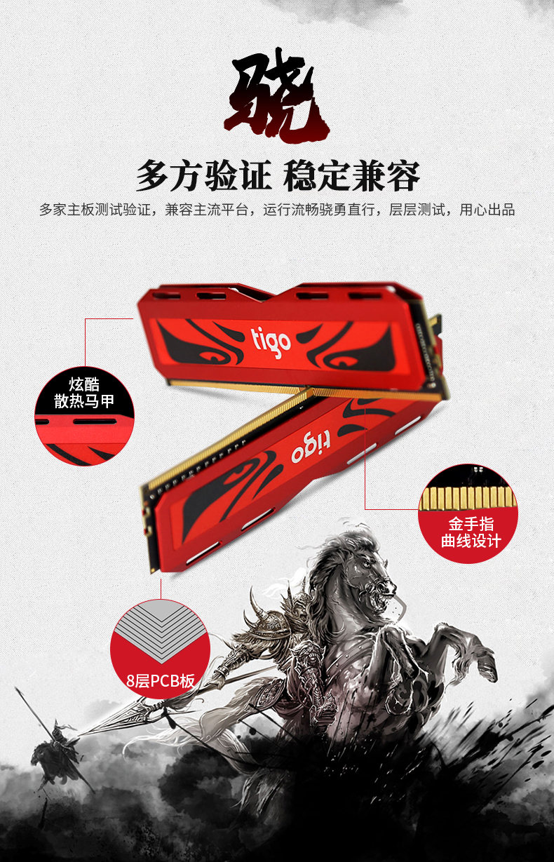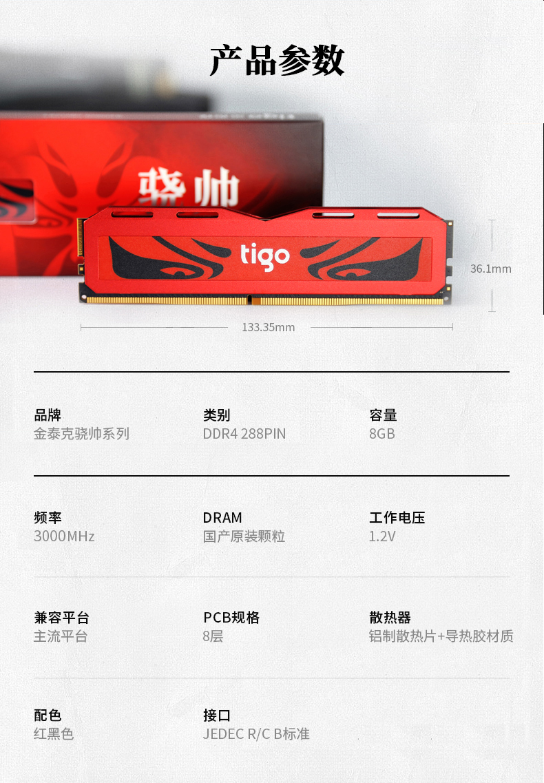 - 商品名称:金泰克(Tigo)DDR4 3000 8GB台式机内存条 骁帅马甲条 国产颗粒内存条