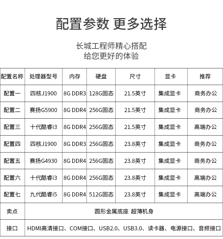 商品名称:长城(Great Wall)四核一体机电脑酷睿I3/I5/高配游戏家用办公台式一体式整机 21.5英寸 十代G5905 8G 256G