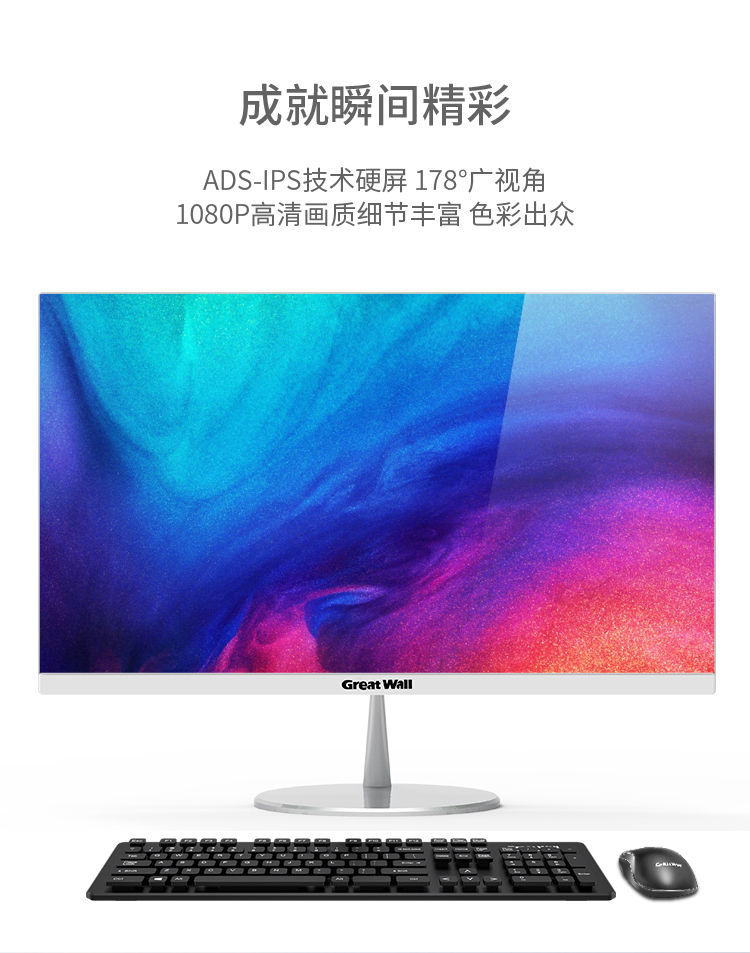 长城(Great Wall)四核一体机电脑酷睿I3/I5/高配游戏家用办公台式一体式整机 21.5英寸 十代G5905 8G 256G
