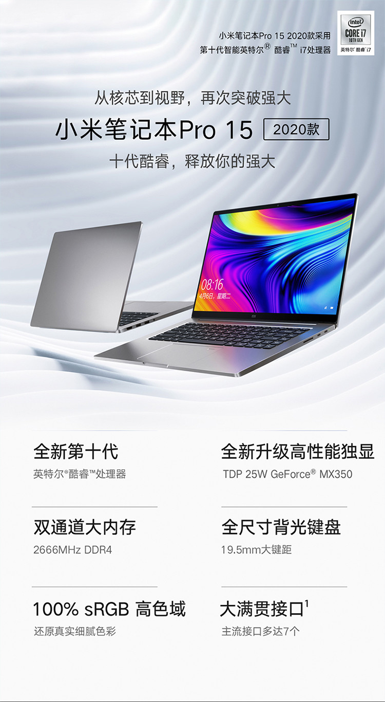 - 商品名称:小米Pro 15 2020款 网课学习 窄边框轻薄(第十代英特尔酷睿i7-10510U 16G 1T PCIe MX350)灰 手提 笔记本电脑
