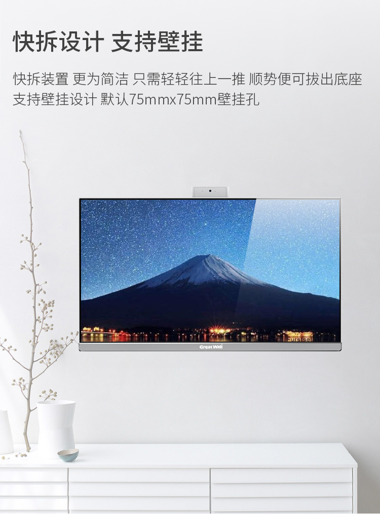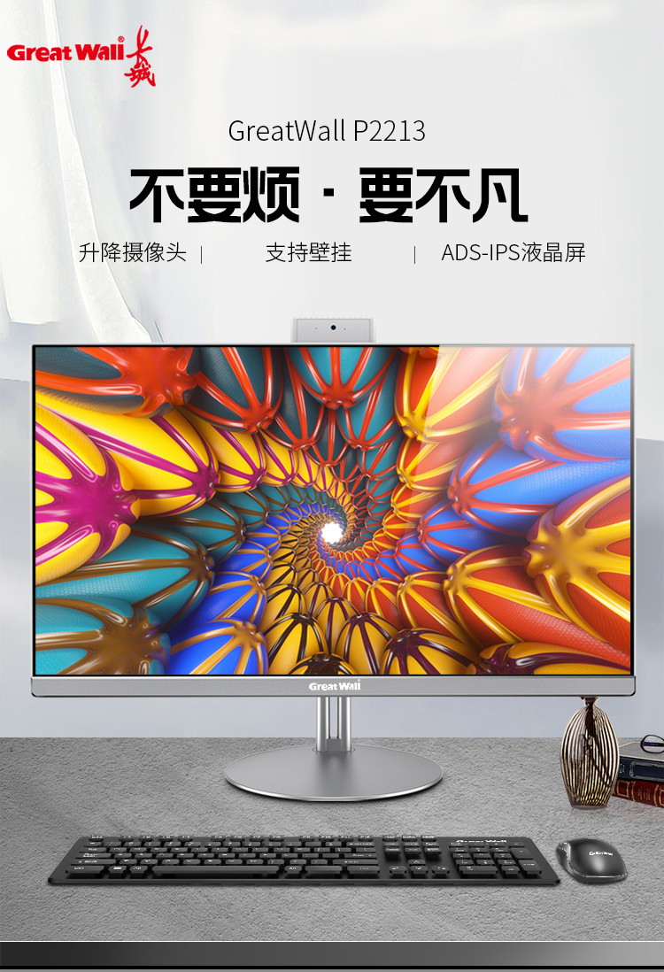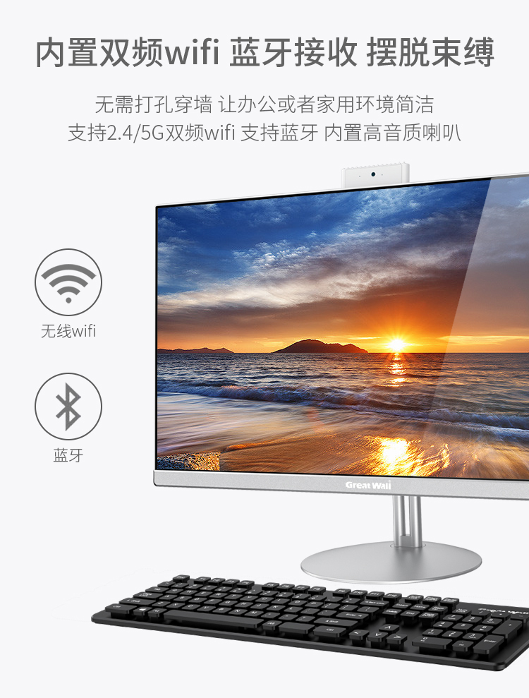 长城(Great Wall)家用办公酷睿I3/I5/I7台式一体机电脑/摄像头/壁挂/整机 21.5英寸 四核I5-8300H 8G 256G