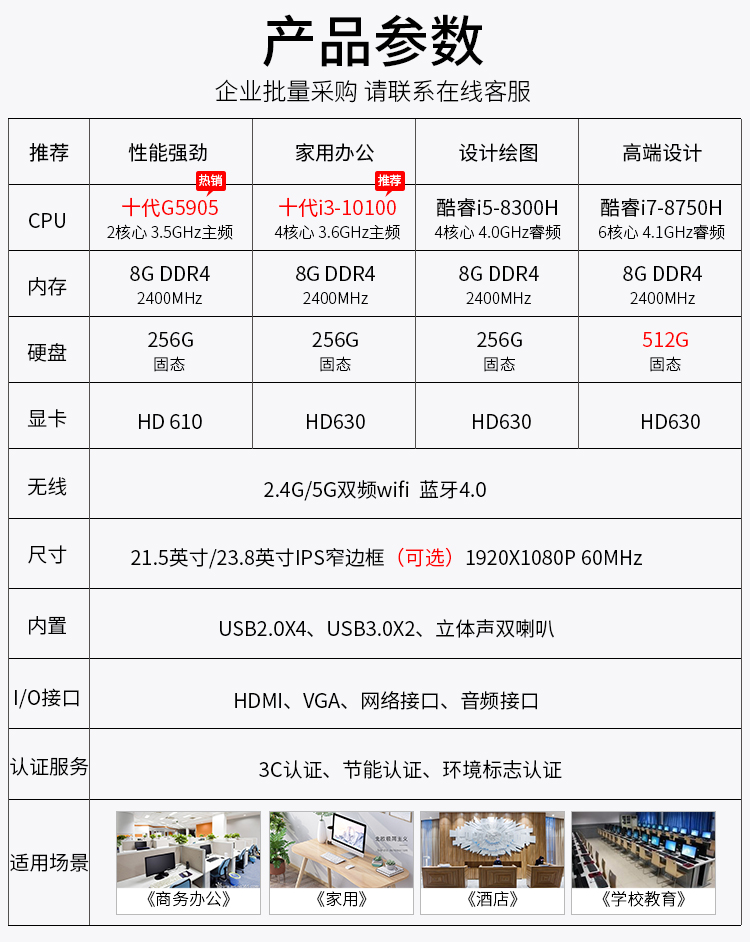 商品名称:长城(Great Wall)家用办公酷睿I3/I5/I7台式一体机电脑/摄像头/壁挂/整机 21.5英寸 四核I5-8300H 8G 256G