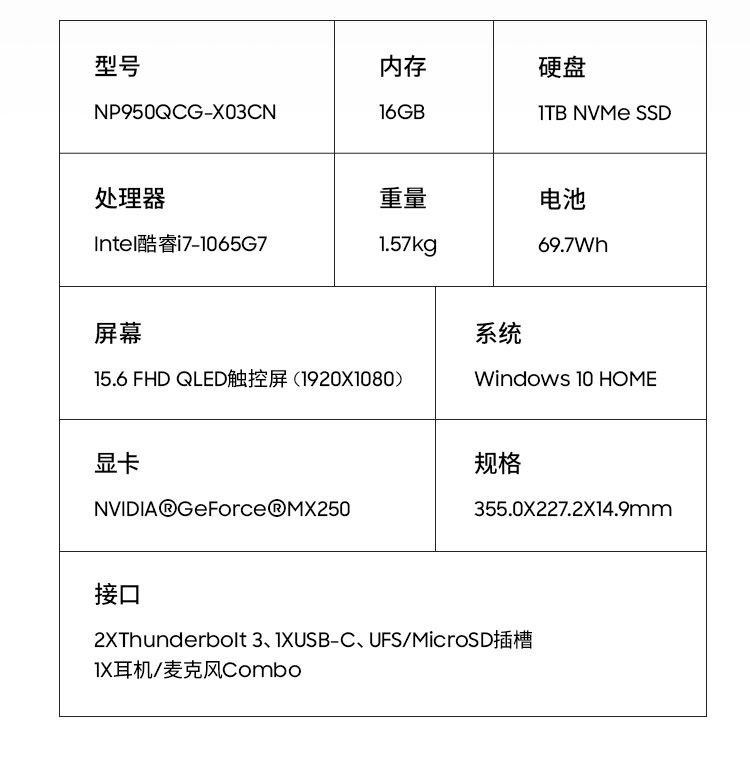 - 型号:NP950QCG-X03CN