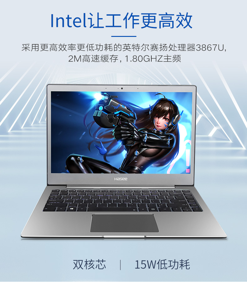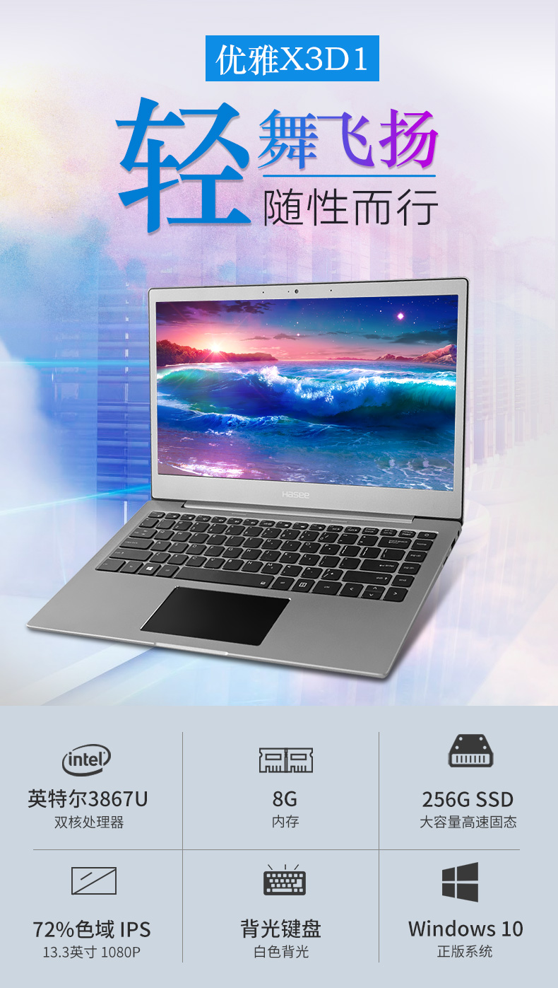 - 商品名称:神舟(HASEE)优雅X3D1 13.3英寸72%色域轻薄笔记本电脑(3867U 8G 256G SSD IPS)