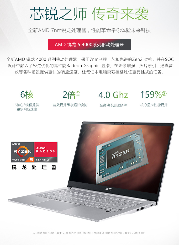 - 商品名称:宏碁(Acer)传奇 14英寸 新7nm六核处理器 高性能轻薄本 全金属 宏基笔记本电脑(R5-4500U 8G512GSSD Win10)