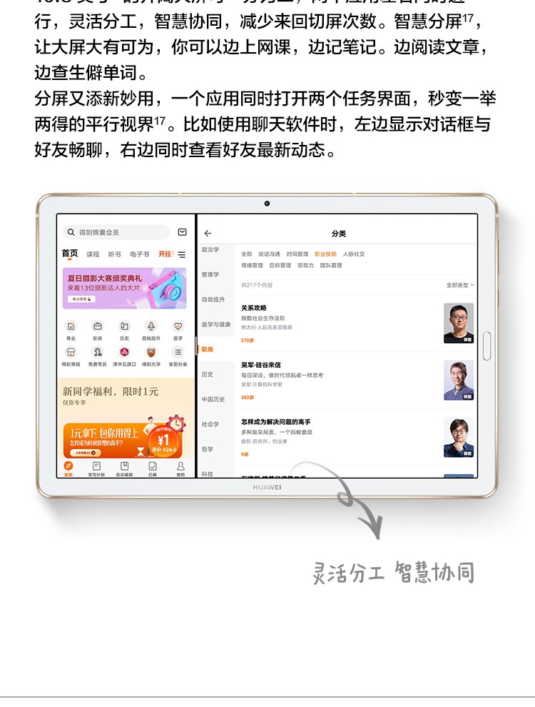 华为平板MatePad 平板电脑二合一10.8英寸娱乐学习pad可选全网通平板 6+64G Wifi 金色 麒麟990 2K高清 指纹识别