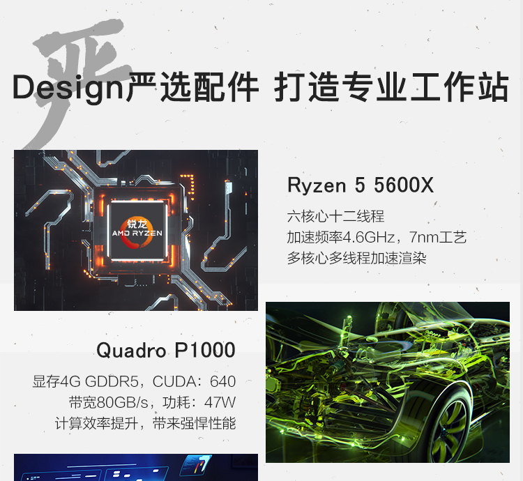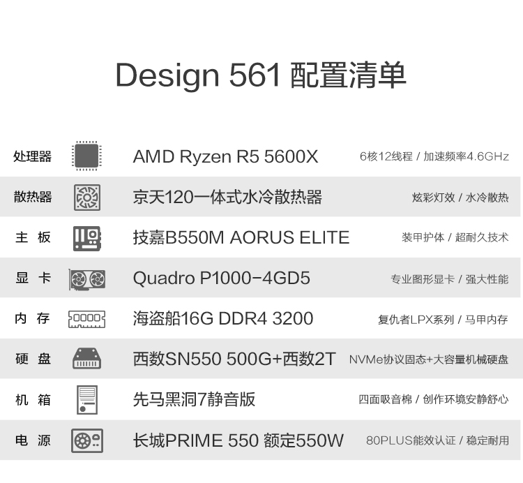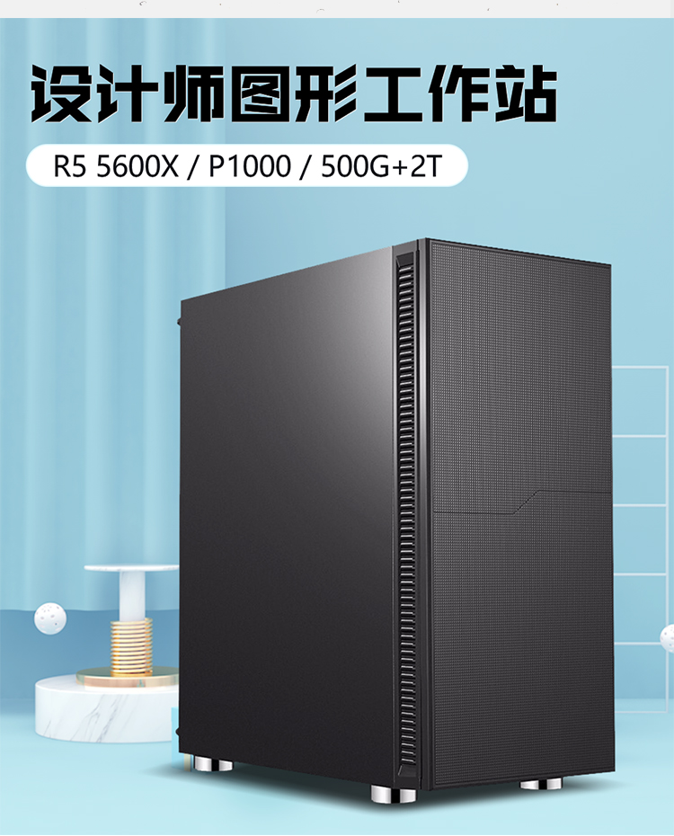 京天 Design 561 R5 5600X/P1000/500G SSD+2T/16G DDR4台式组装电脑主机设计师3D渲染建模图形工作站UPC
