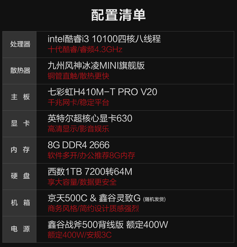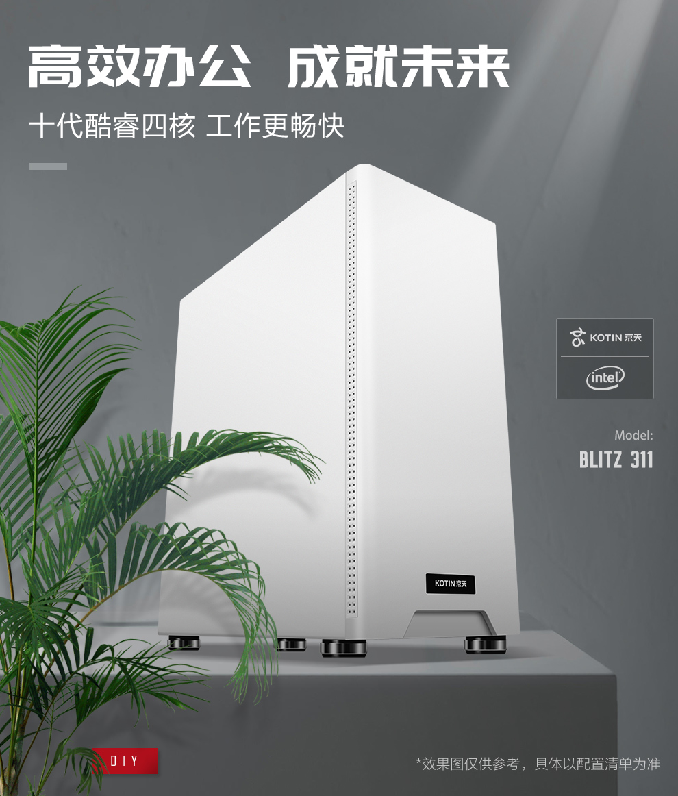 商品名称:京天 Blitz 311 i3 10100/8G DDR4/1T机械硬盘/商务办公企业采购家用台式组装电脑主机UPC