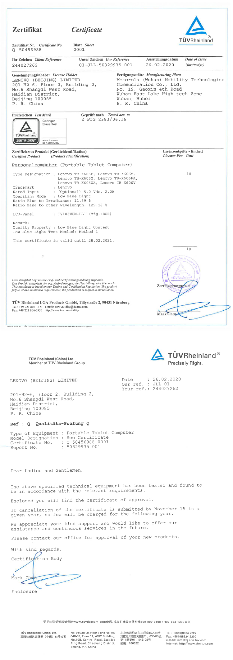 认证型号:Lenovo TB-X606F