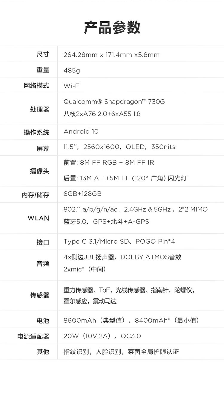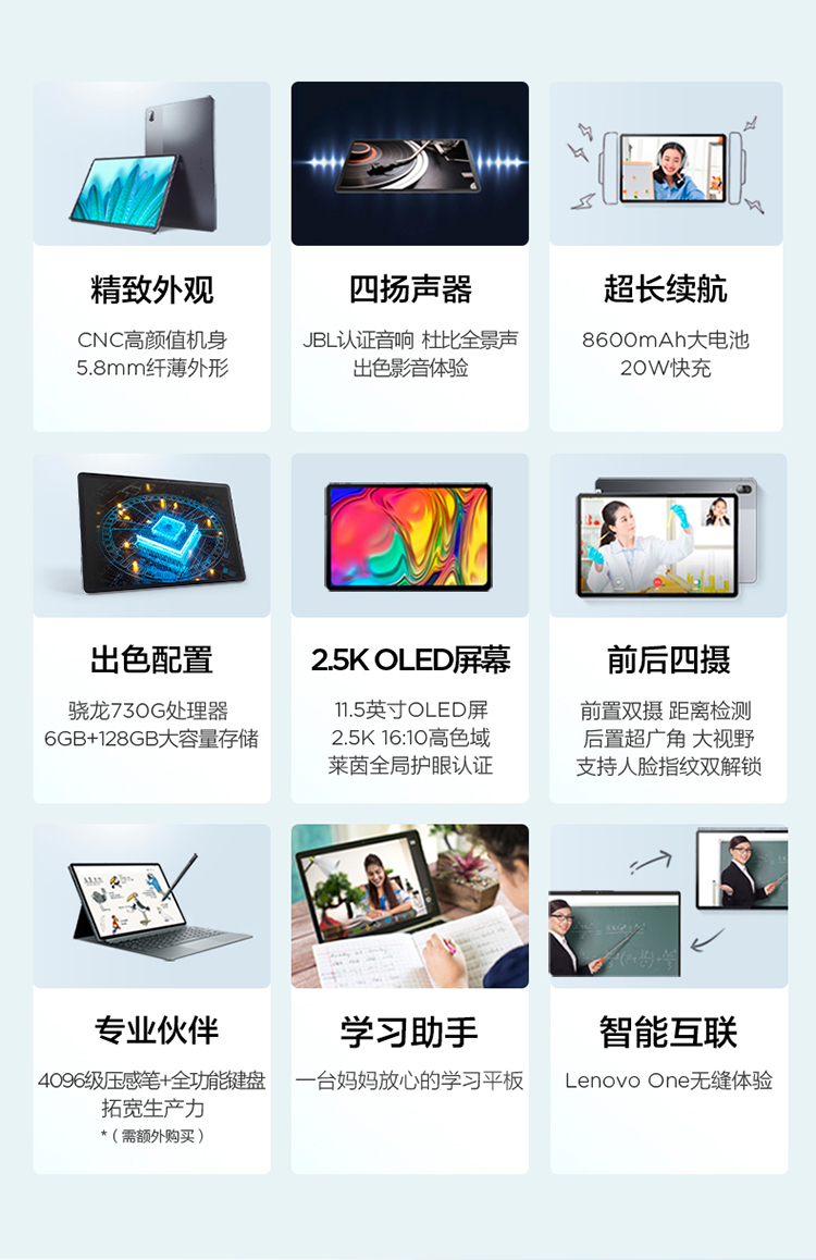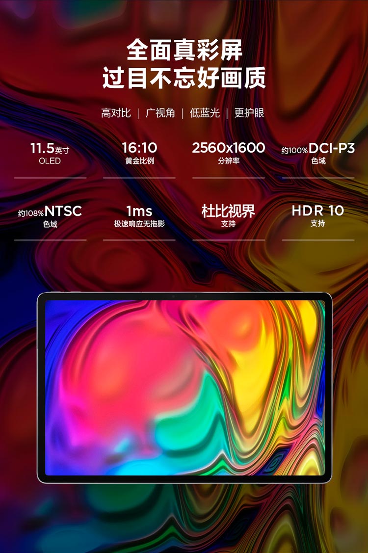 商品名称:联想(Lenovo)小新Pad Pro 11.5英寸 影音娱乐办公平板电脑 莱茵认证 学习模式 2.5k OLED屏 6GB+128GB 灰
