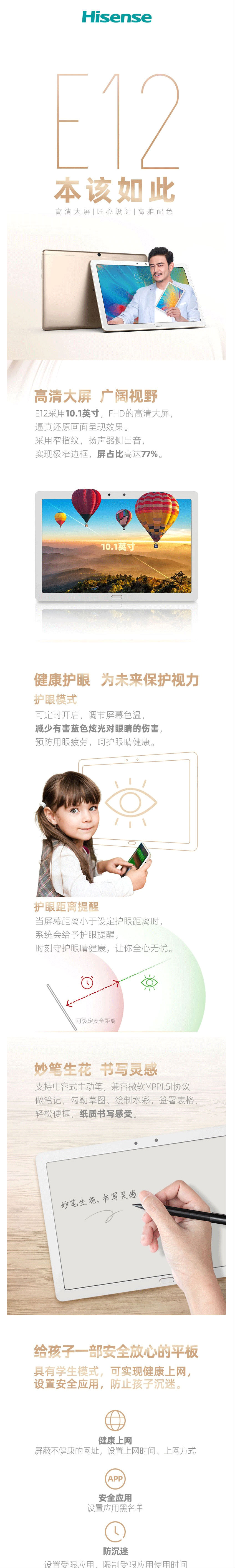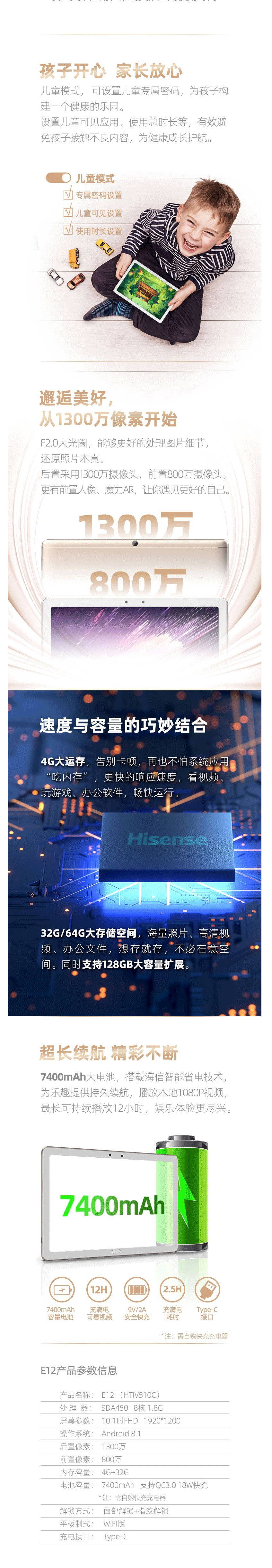 - 商品名称:海信(Hisense)E12 10.1英寸平板电脑 大内存 高清大屏 学生学习平板电脑 4+32G
