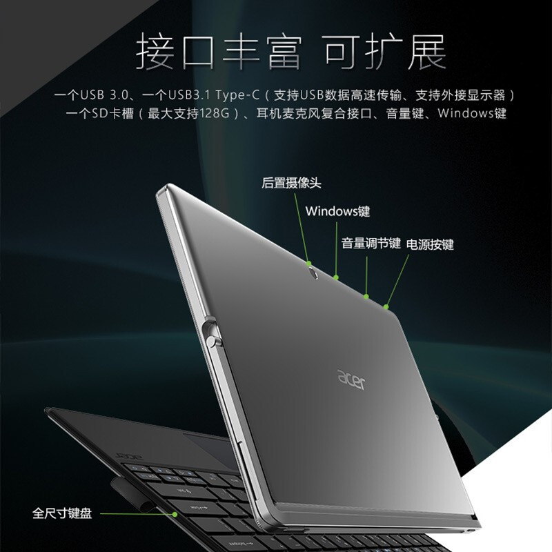 - 商品名称:宏碁acer宏基Switch 3 12.2英寸N3350轻薄便携触控键盘二合一平板电脑70%色域 键盘可插拔/8h续航/仅重1.25kg/16:10 标配 4G内存 128G固态