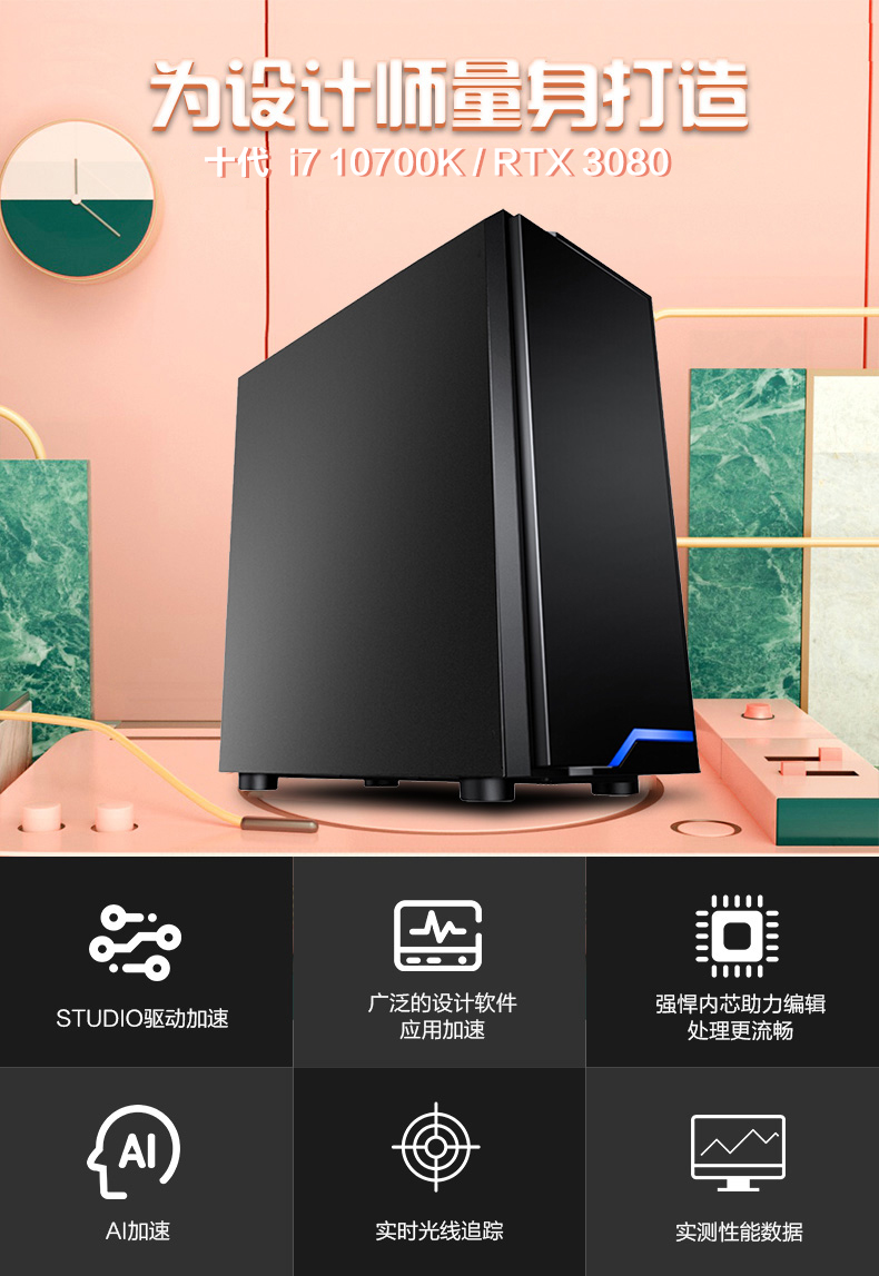 - 商品名称:攀升 i7 10700K/RTX3080/平面设计师台式电脑建模渲染工作站主机DIY组装机