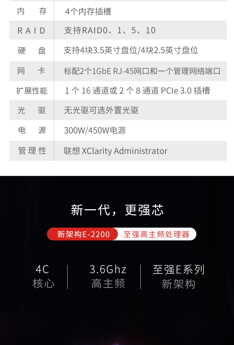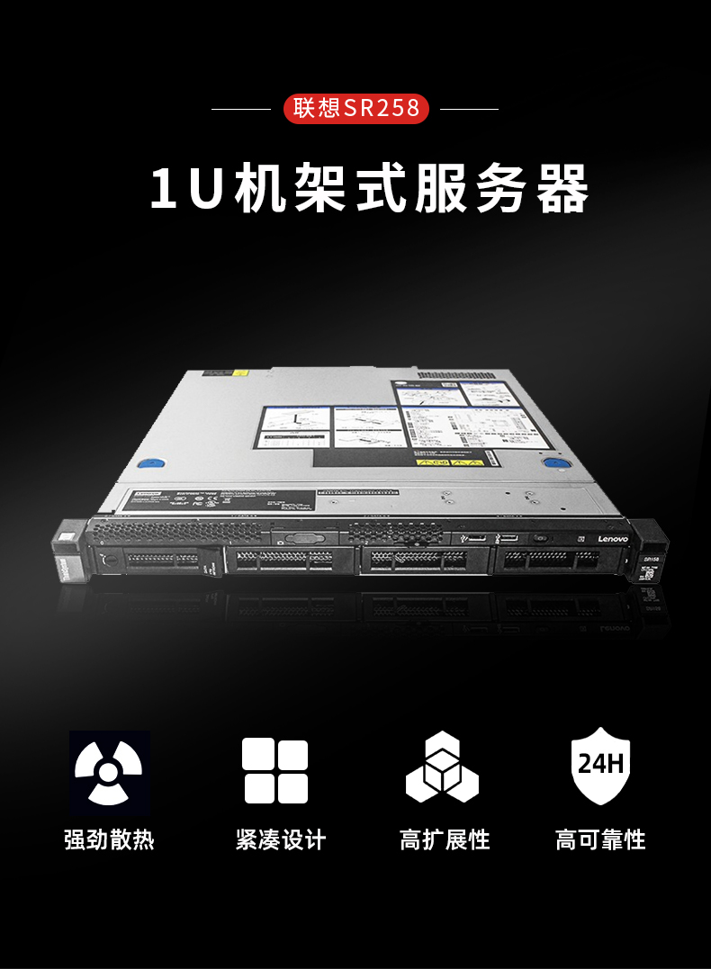 联想(ThinkSystem)SR258 1U机架式服务器主机 (RS260/X3250M6升级版) 至强 E-2234 4核8线程 450W 16G ECC / 2x1T 企业级 RAID1