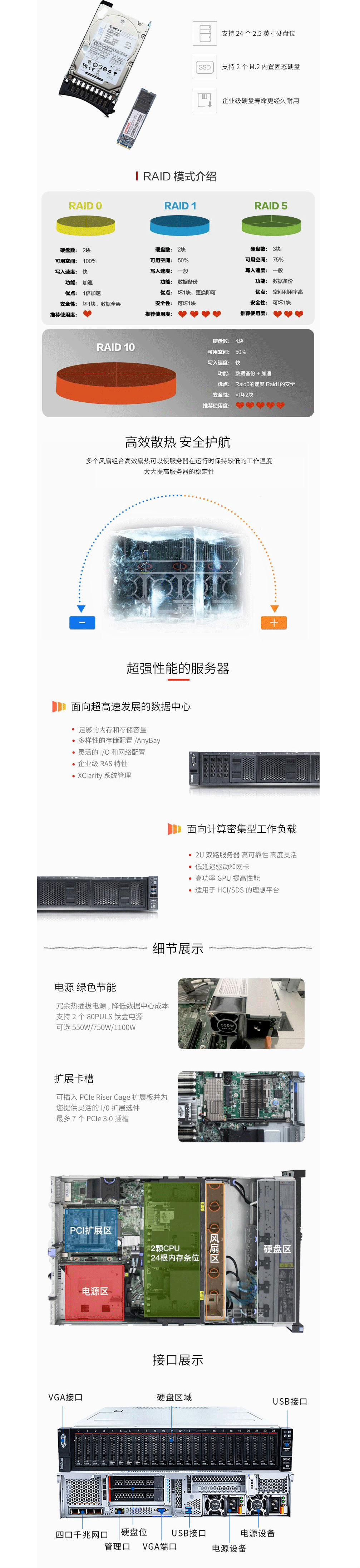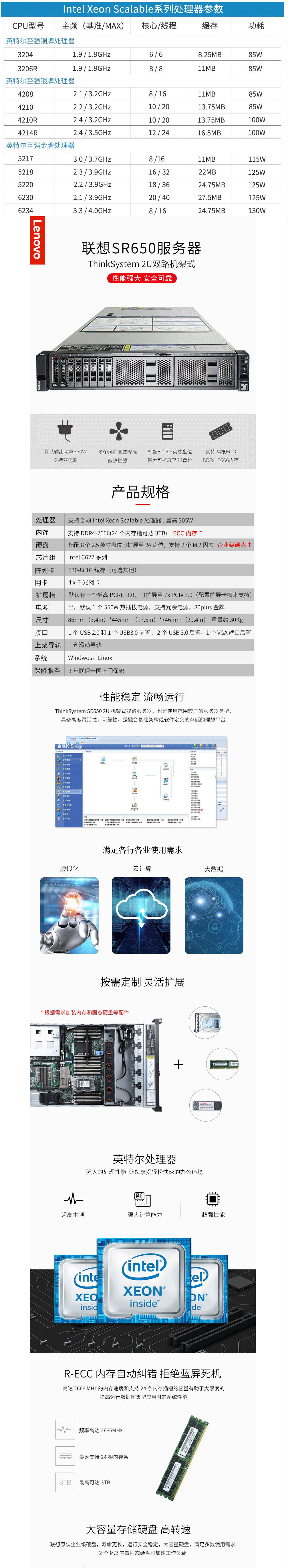 商品名称:联想lenovo ThinkSystem SR650 2U机架式服务器主机 1颗铜牌3204 550w单电源 16G / 300G