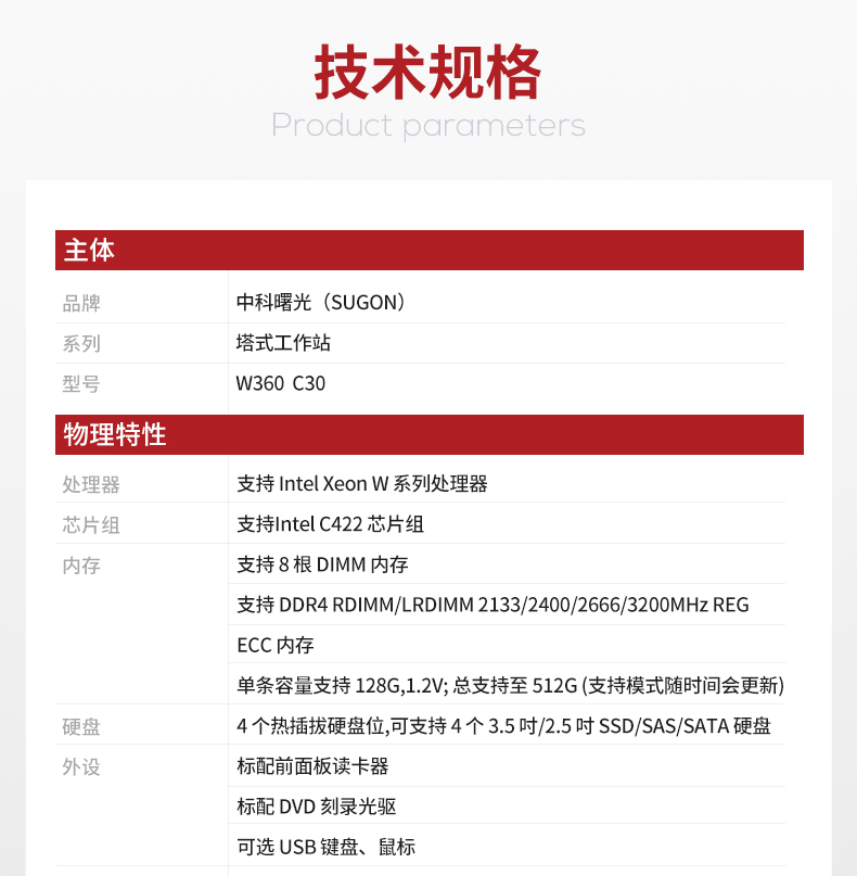 商品名称:中科曙光(Sugon)W360-C30曙光塔式图形工作站GPU台式服务器主机至强W-2123四核3.6G/16G内存/1T硬盘/2G显卡