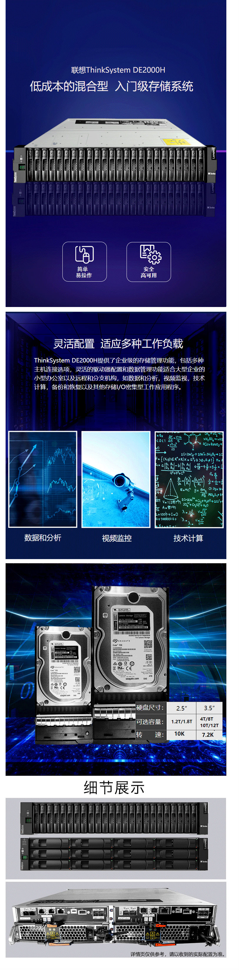 商品名称:联想(Lenovo)DE2000H 存储服务器主机 小盘/4*16GB FC/8*1.2TB