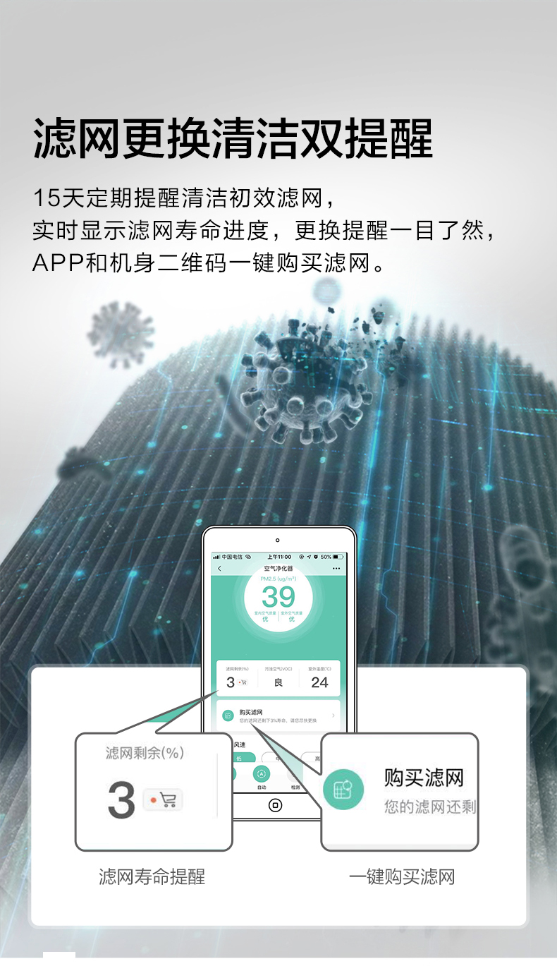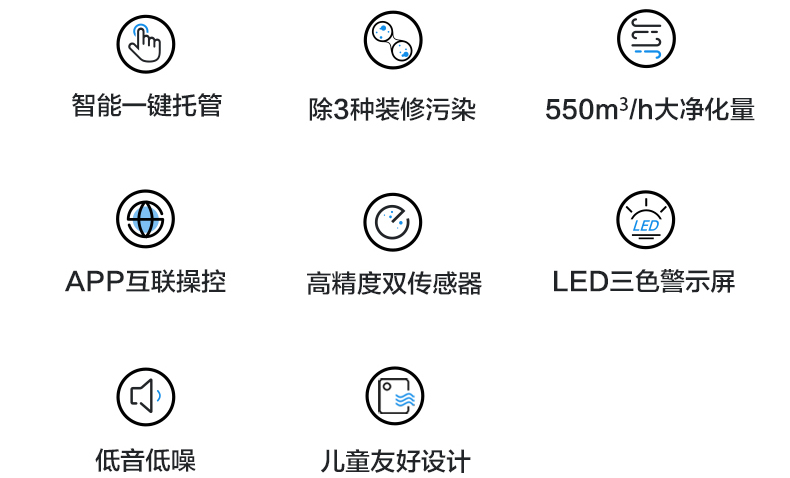 - 过滤污染物类型:甲醛;PM2.5;二手烟;花粉;过敏源