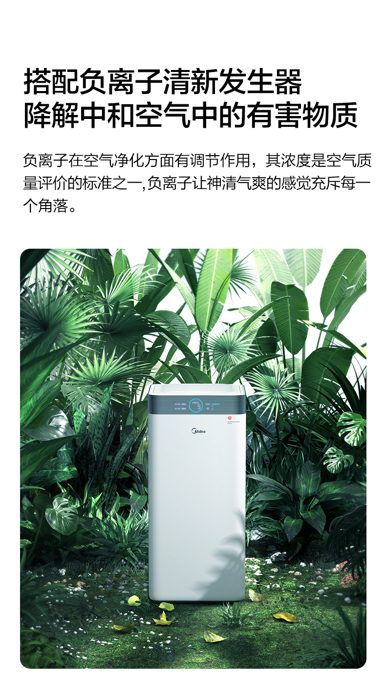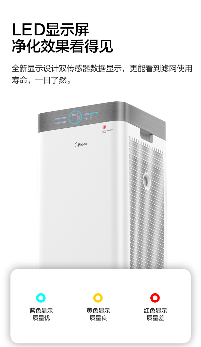 - 商品名称:美的(Midea)空气净化器 家用除甲醛除雾霾净化器 除菌除PM2.5除异味美的净化器KJ550G-JA32