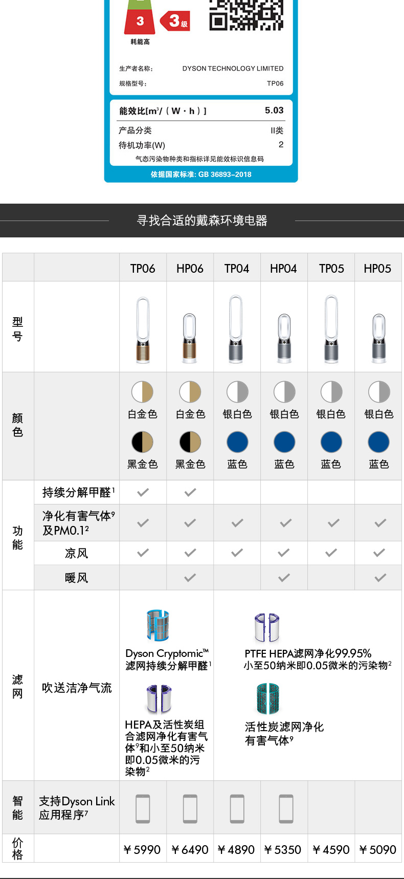 - 商品名称:戴森(DYSON)TP06 空气净化风扇 净化循环二合一 整屋循环净化 去除甲醛 白金色