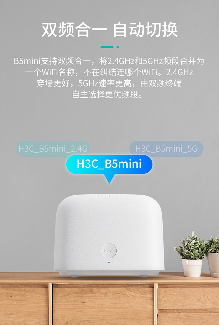 - 商品名称:华三 H3C B5mini路由器无线5G双频全千兆mesh组网大中小户型穿墙不掉线游戏加速 1200M