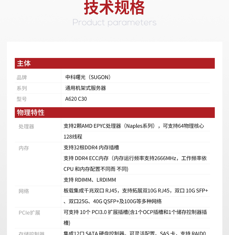 商品名称:中科曙光(Sugon)曙光A620-C30两颗7261/2*16G/2*1.2T硬盘/550W冗余电源服务器主机2U机架式