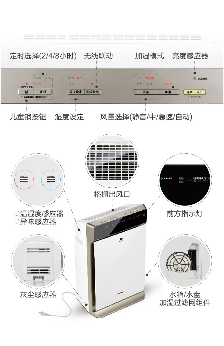 - 商品名称:松下(Panasonic)除甲醛空气净化器家用 除菌加湿除雾霾 纳米水离子 京鱼座智能生态产品 F-73C6VJD-S